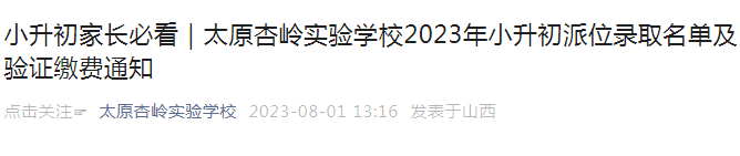点击查看:太原杏岭实验学校2023年小升初派位录取名单