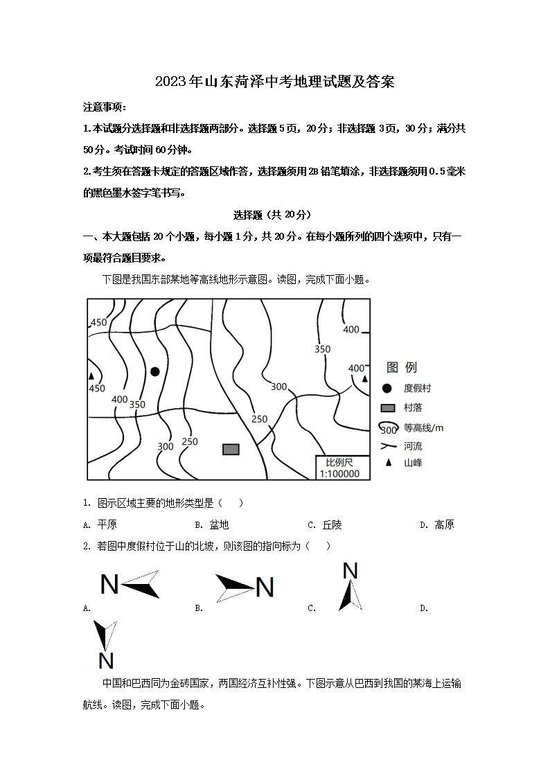 2023年山东菏泽中考地理试题及答案(Word版)09-06