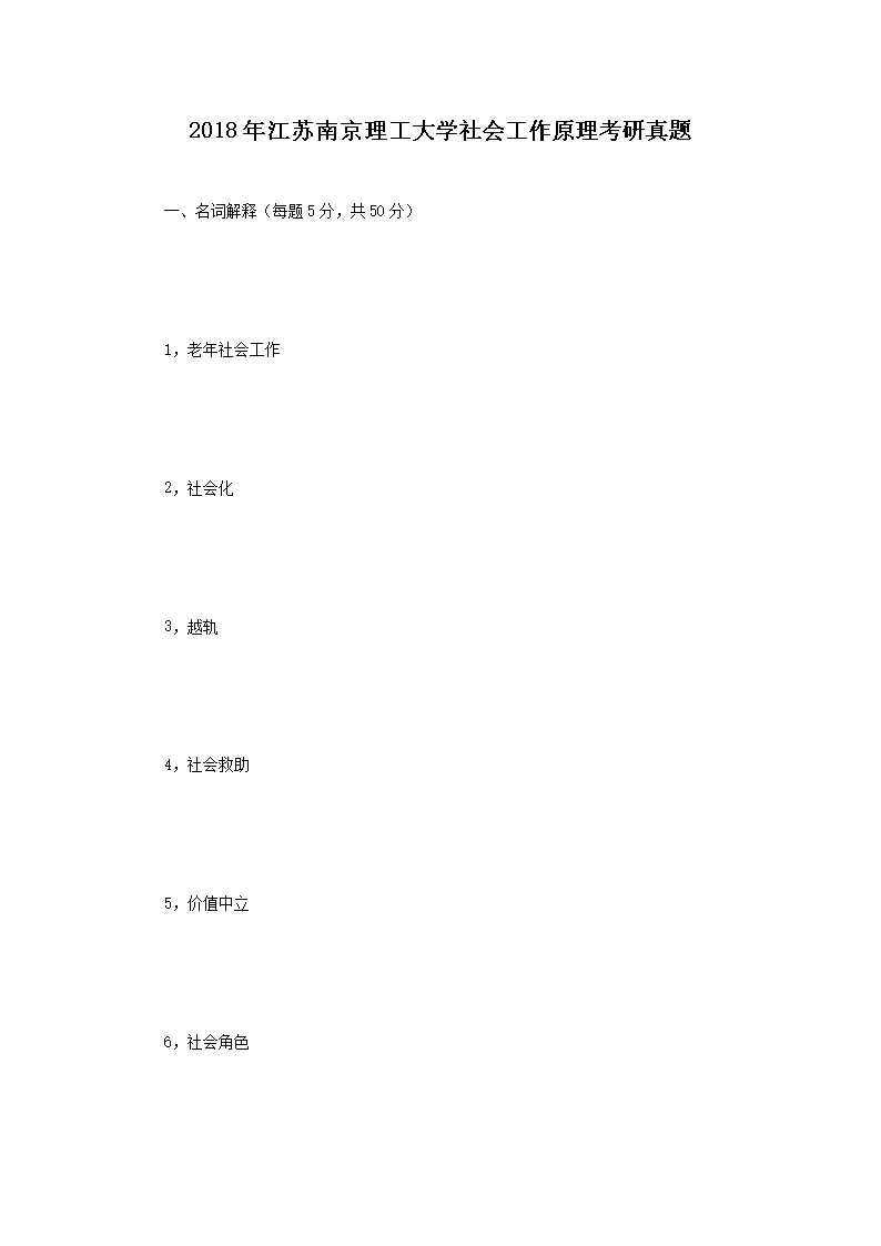 2018年江苏南京理工大学社会工作原理考研真题(Word版)06-26