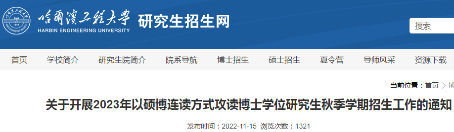 黑龙江:哈尔滨工程大学开展2023年以硕博连读方式攻读博士学位研究生秋季招生工作通知11-17