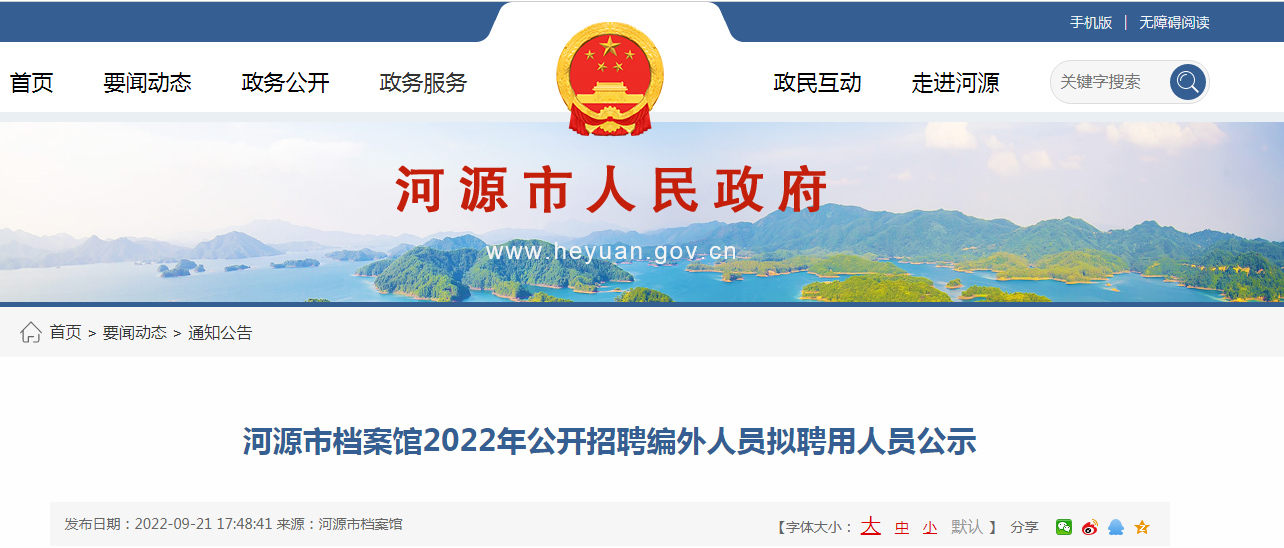 2022年广东省河源市档案馆编外人员拟聘用人员公开招聘公示09-23