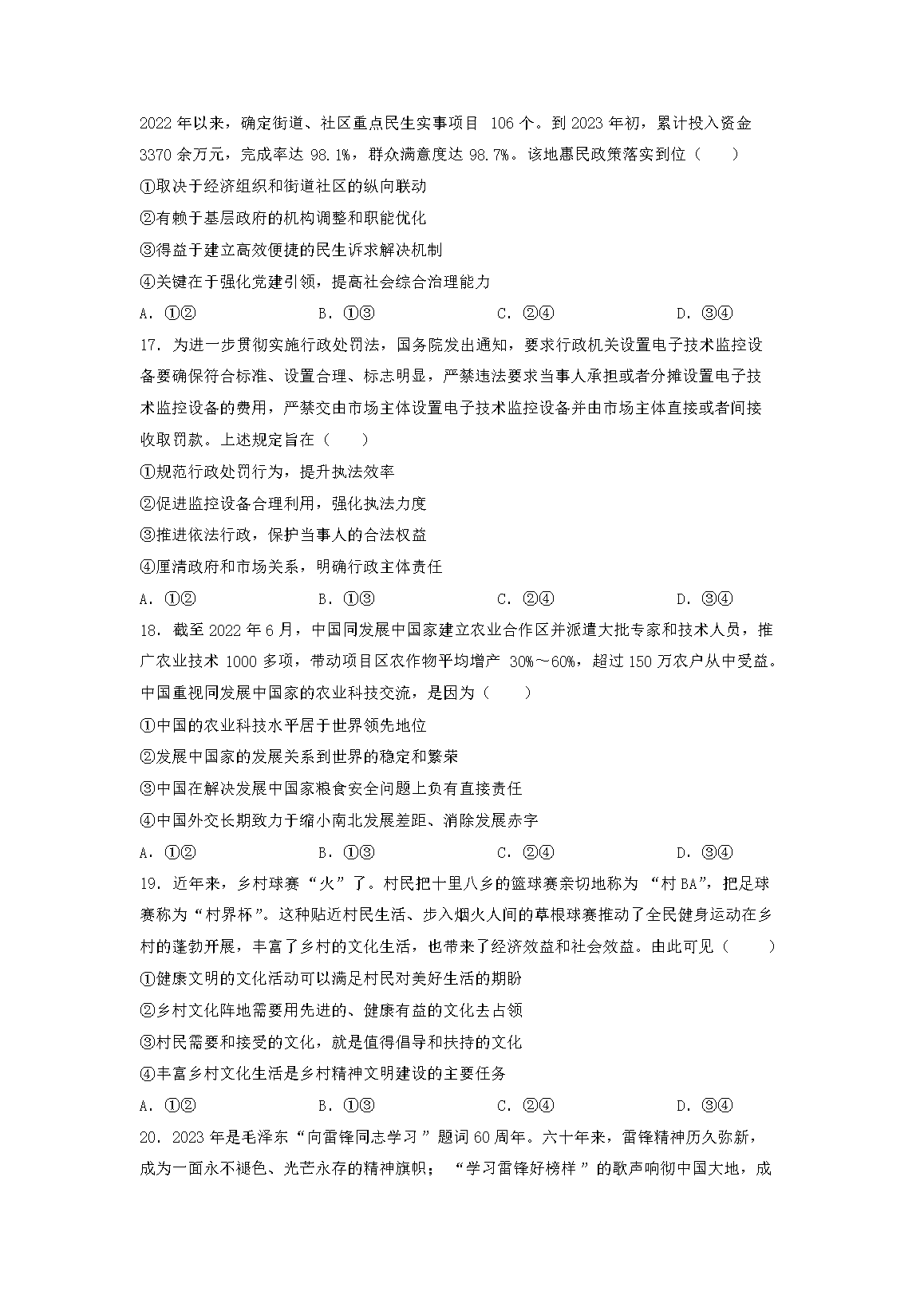 2023年江西高考文科综合真题及答案(Word版)06-16