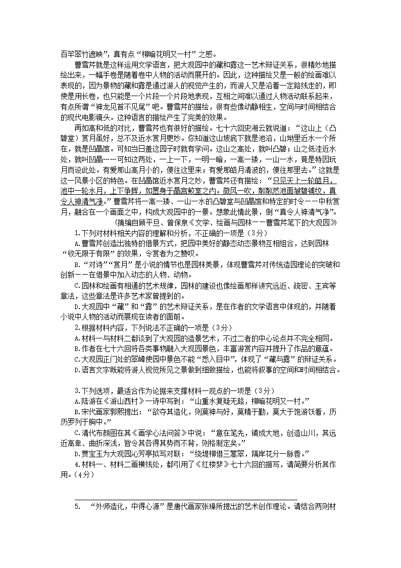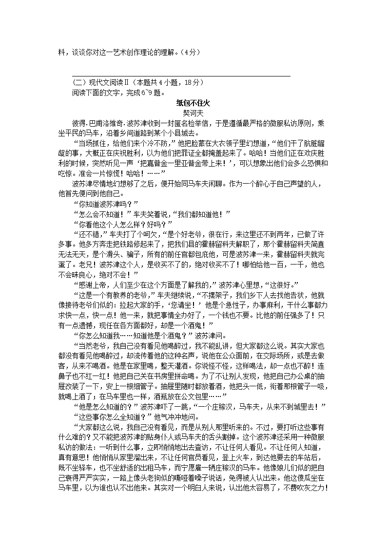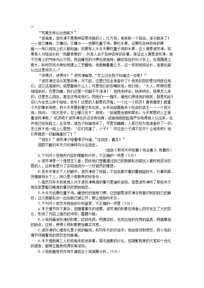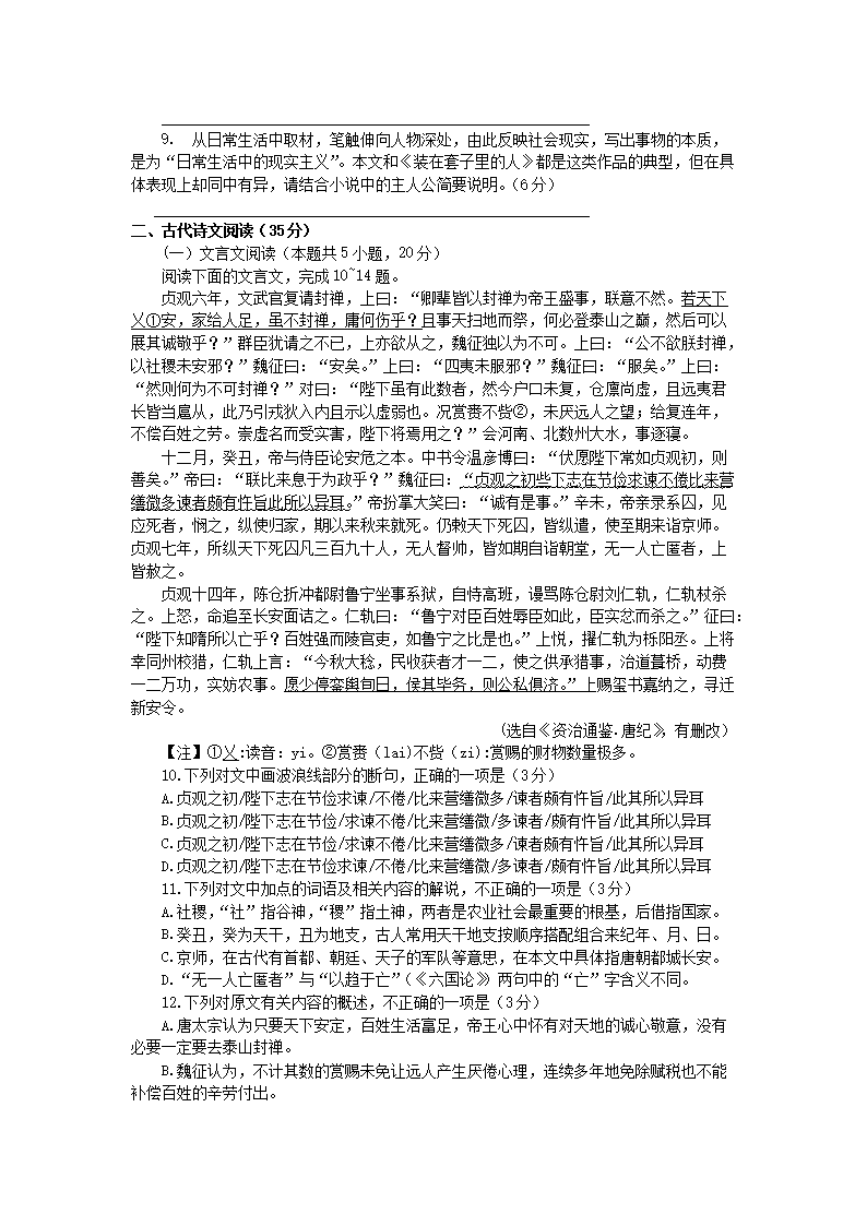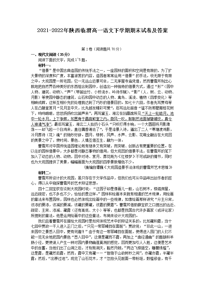 2021-2022年陕西临渭高一语文下学期期末试卷及答案(Word版)08-01