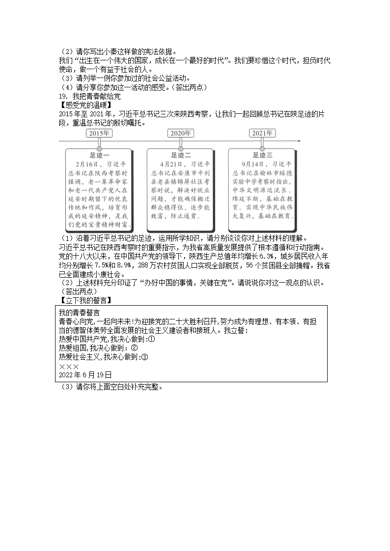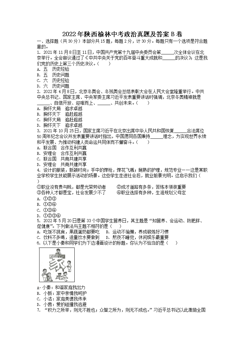 2022年陕西榆林中考政治真题及答案B卷(Word版)05-31