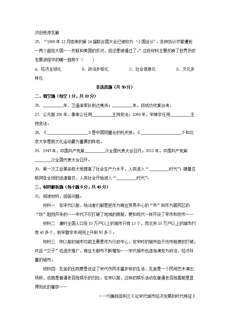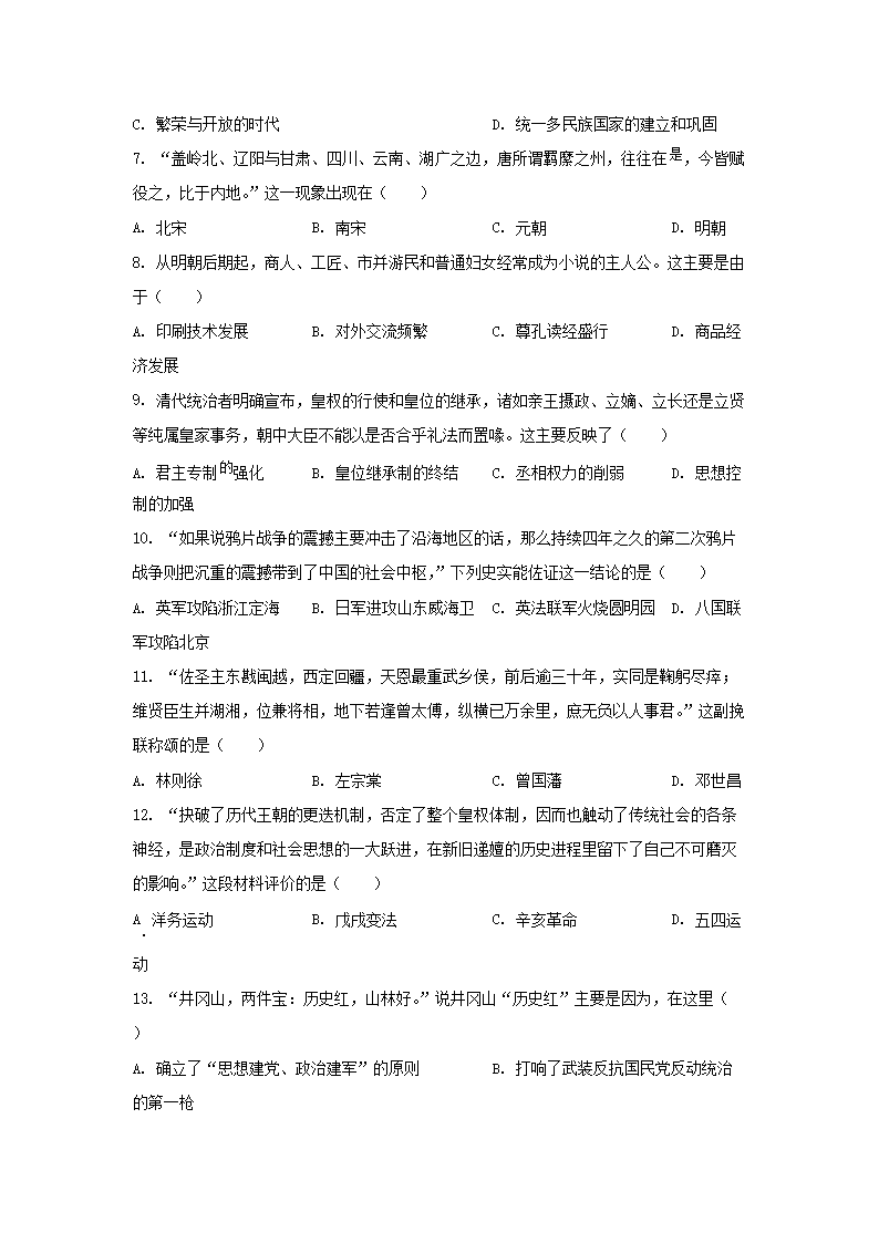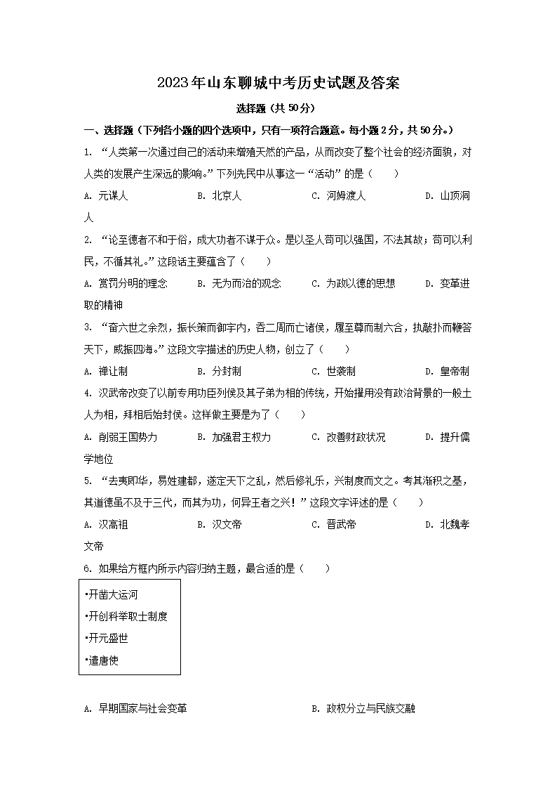 2023年山东聊城中考历史试题及答案(Word版)08-23