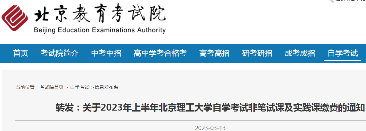 原文标题:转发:关于2023年上半年北京理工大学自学考试非笔试课及实践课缴费的通知