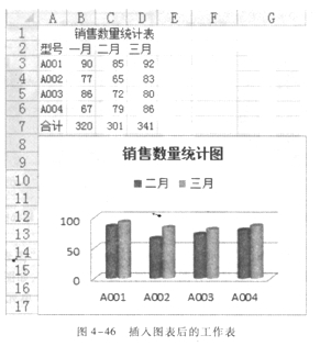 如果将“销售数量统计表”工作表中“一月”列的数据也添加到图表中,操作方法是: