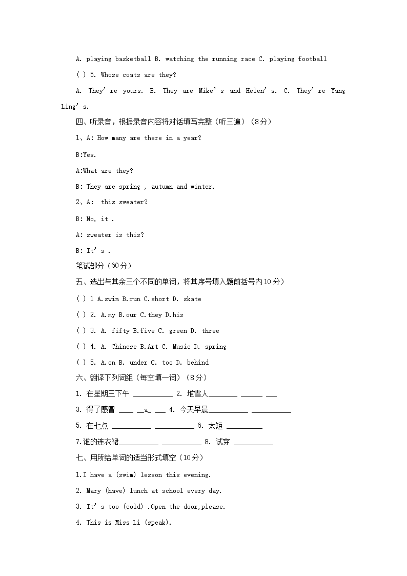 [人教版语文四年级下册第三单元试卷图片]人教版语文四年级下册第三单元试卷11-05