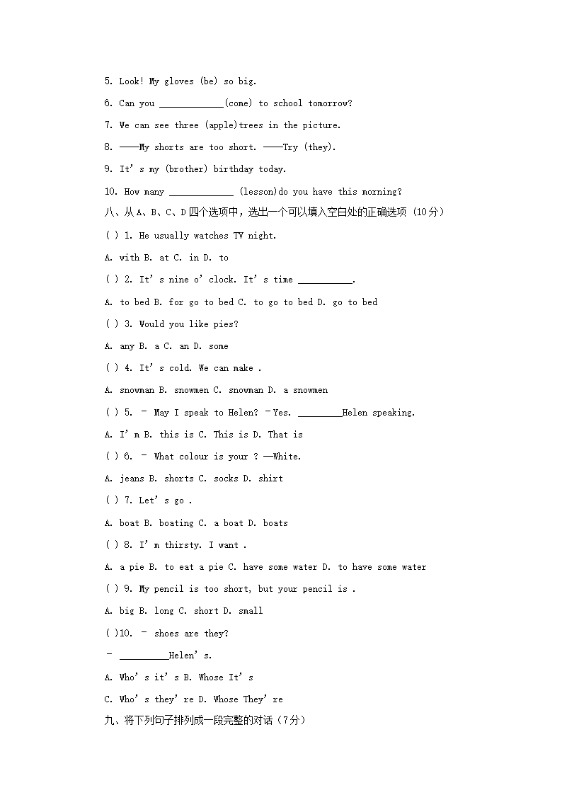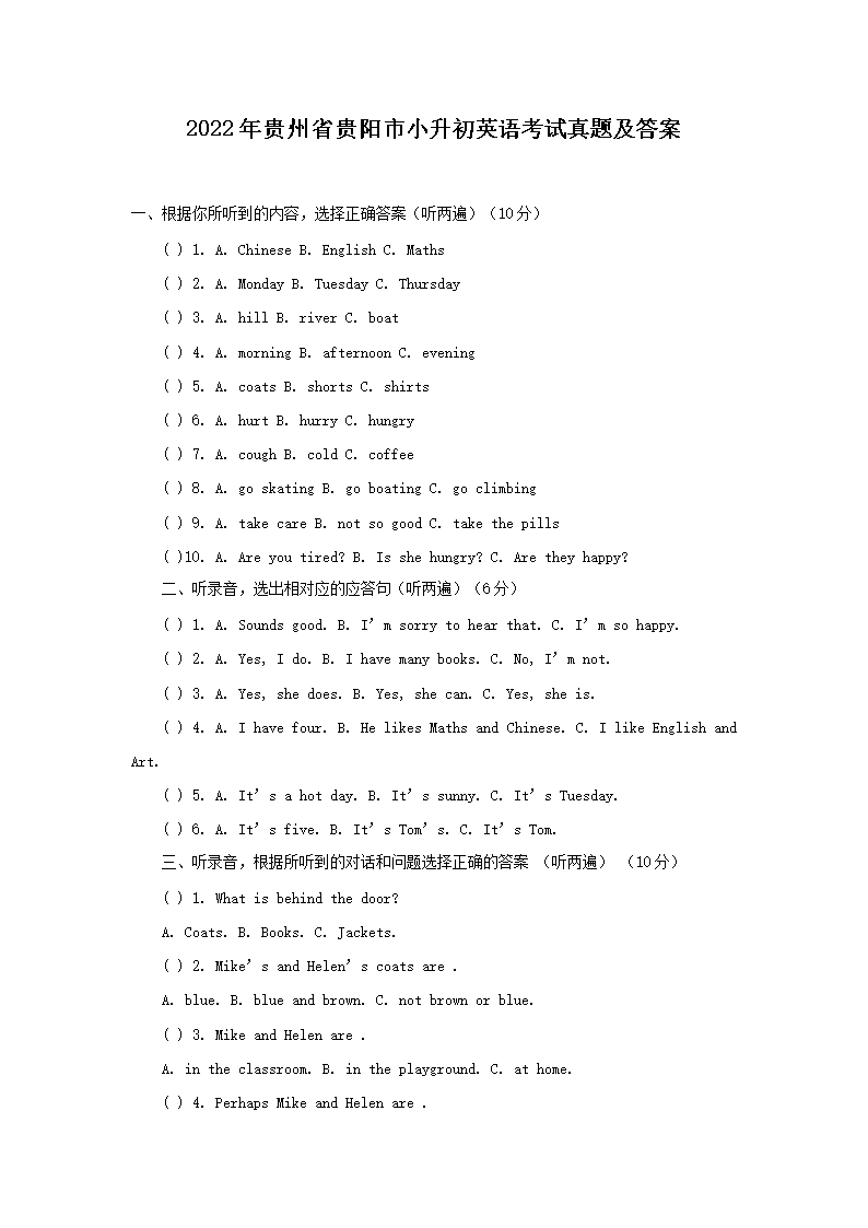 2022年贵州省贵阳市小升初英语考试真题及答案(Word版)07-01