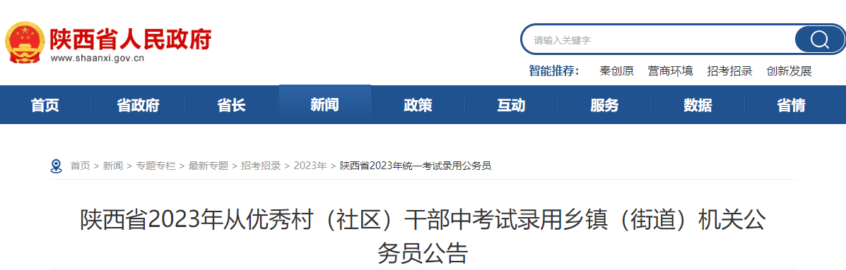 【#公务员考试# #2024年陕西乡镇机关公务员报考范围#】©文档大全网从陕西省人民政府门户网获悉,《2023年陕西从优秀村(社区)干部中考试录用乡镇(街道)机关公务员公告》现已公布!从公告中获悉,报名时间:2023年10月12日18时前,2024年陕西乡镇机关公务员报考范围如下: