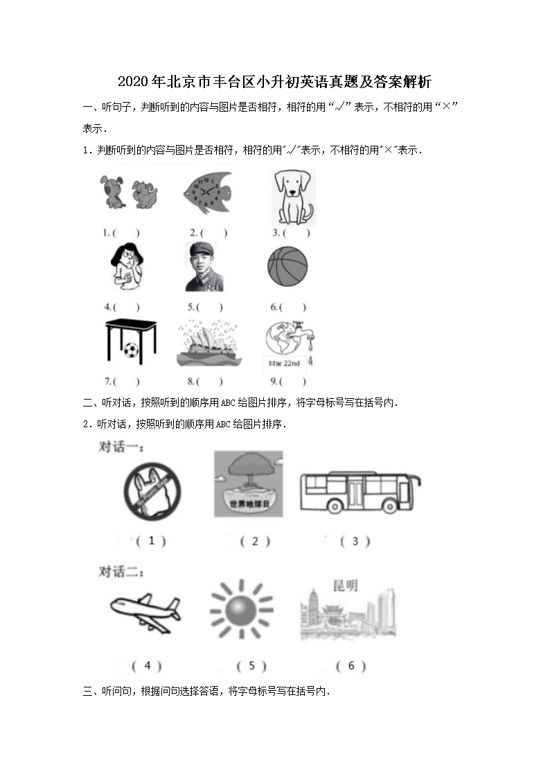 2020年北京市丰台区小升初英语真题及答案解析(Word版)08-01