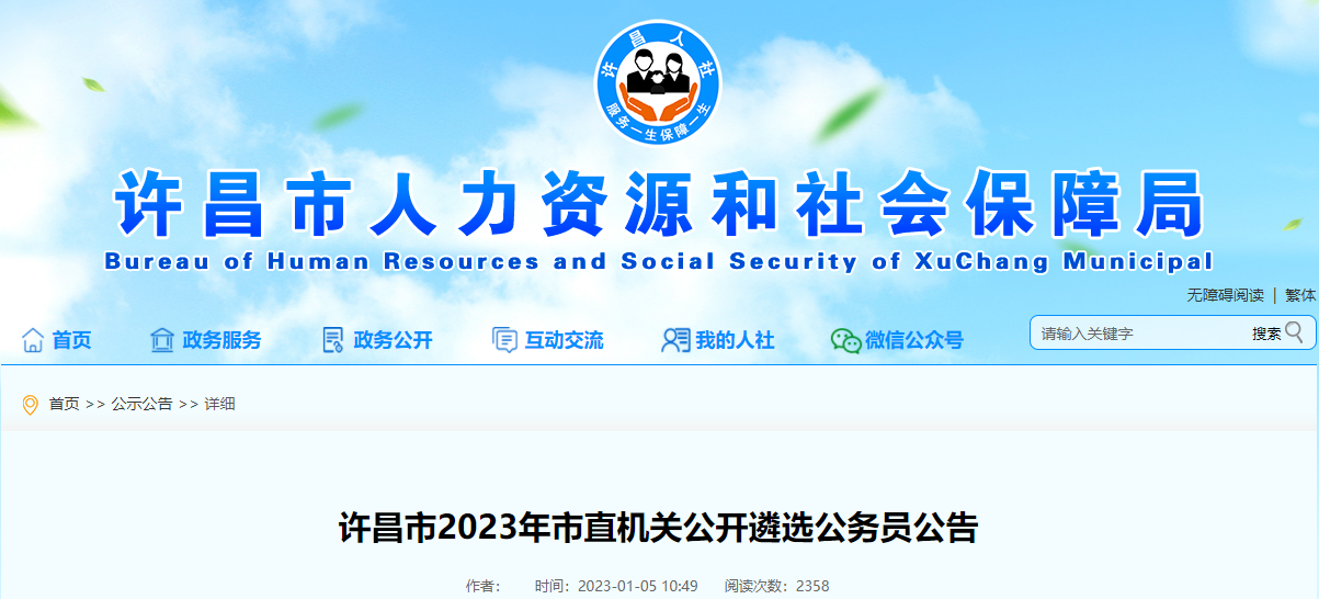 原文标题:许昌市2023年市直机关公开遴选公务员公告