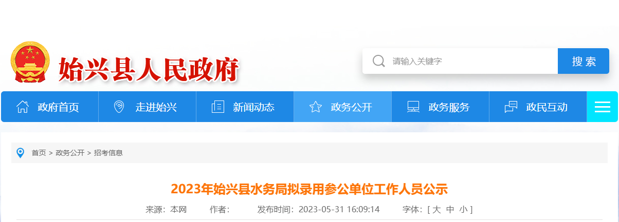 2023年广东韶关市始兴县水务局拟录用公务员公示时间:5月31日-6月6日06-02