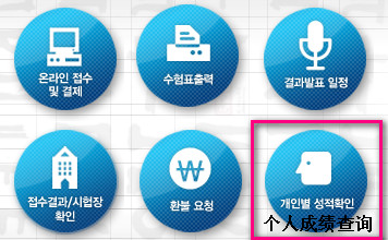 或者按下面最后一个圆圈图标“个人成绩查询(개인별 성적확인)”