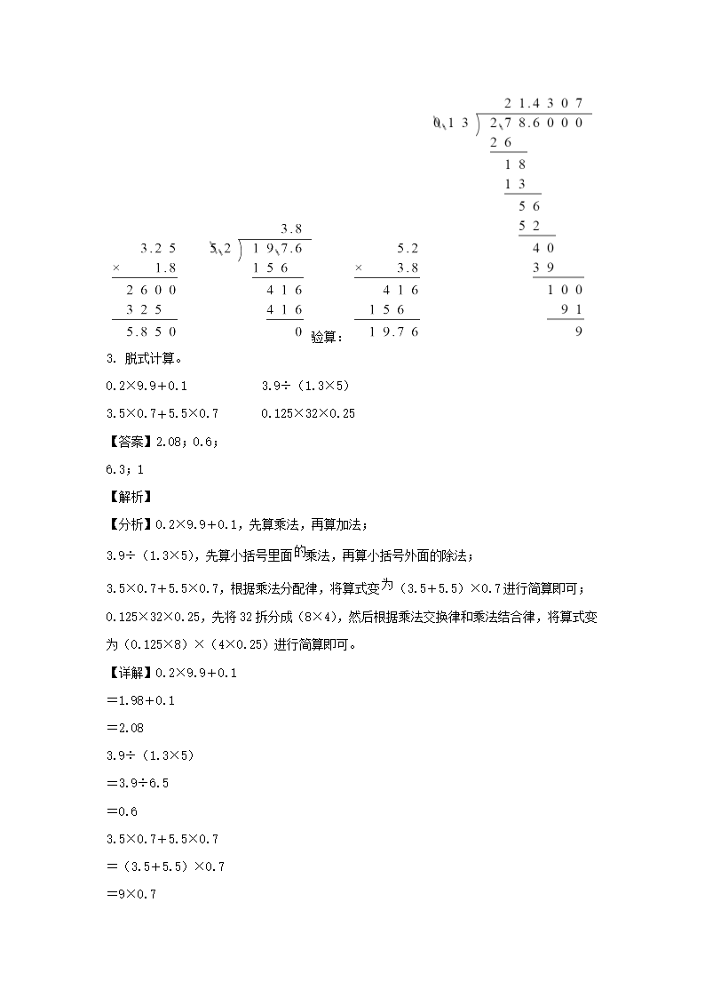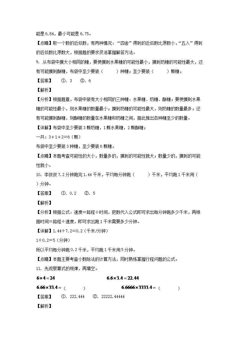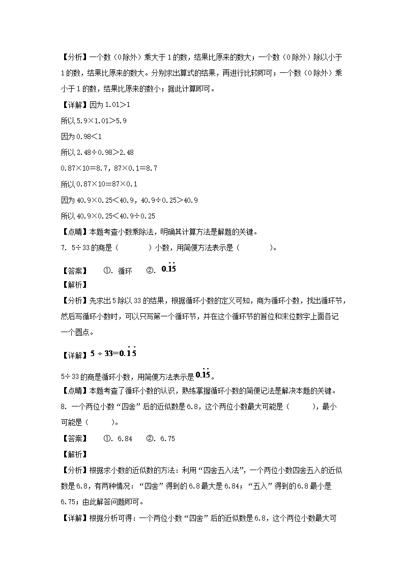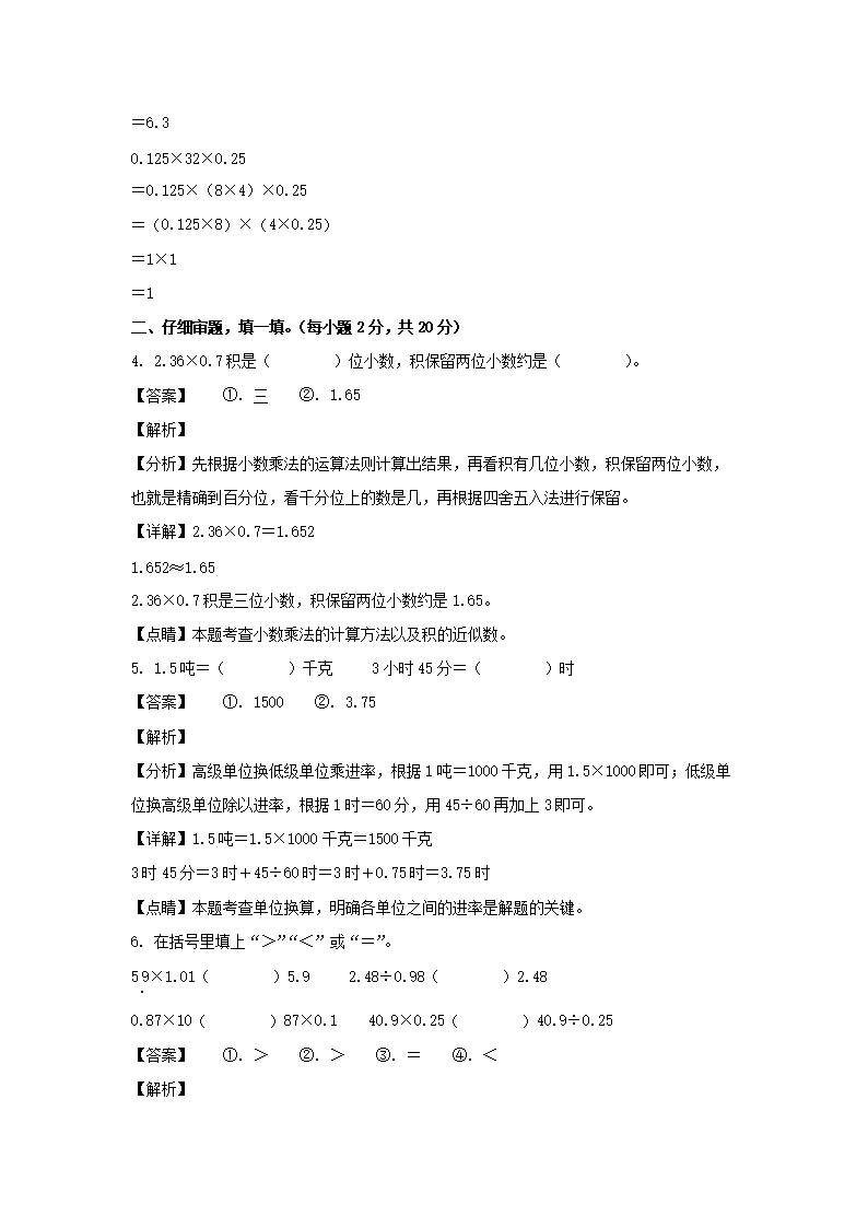 2021-2022学年福建泉州安溪县五年级上册数学期中试卷及答案(Word版)08-30