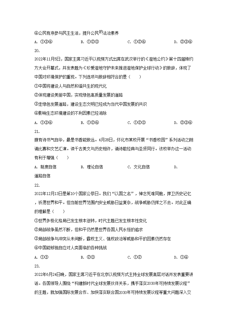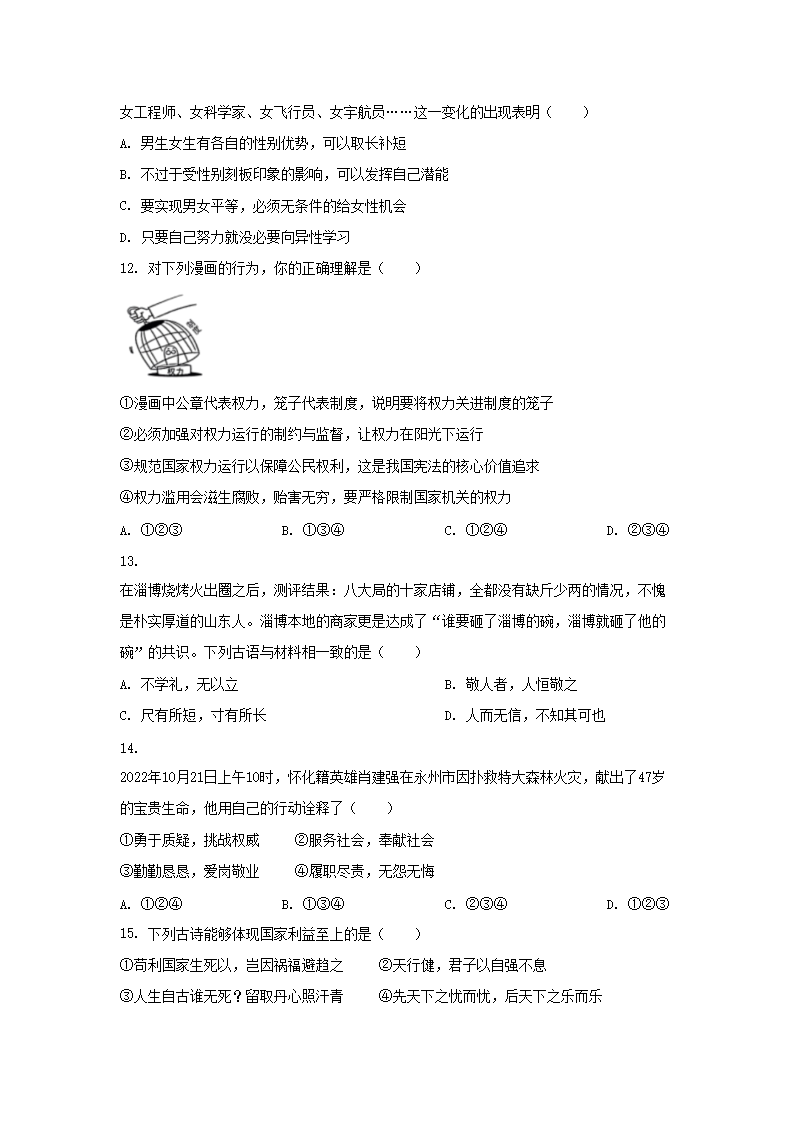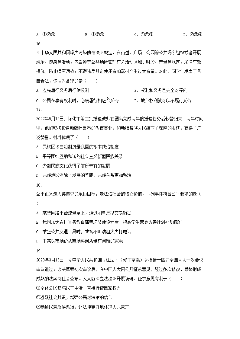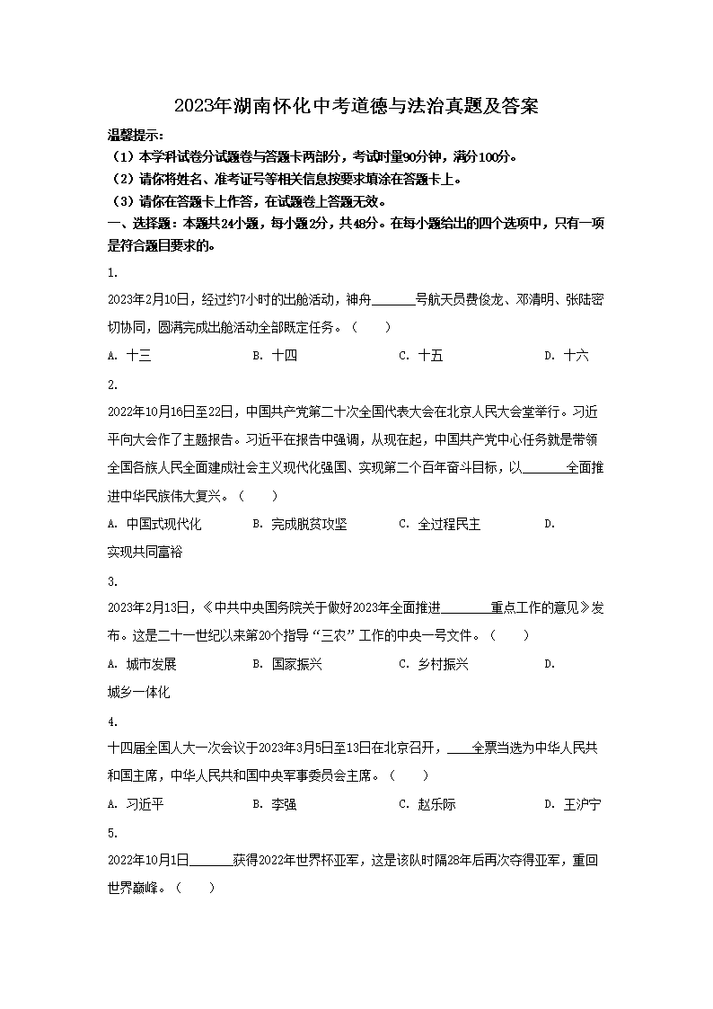 【文档预览】 文档大全网整理发布2023年湖南怀化中考道德与法治真题及答案(Word版),前五页预览如下: