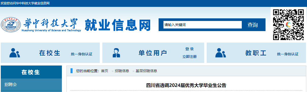 四川省面向华中科技大学选调2024届应届优秀大学毕业生公告10-13
