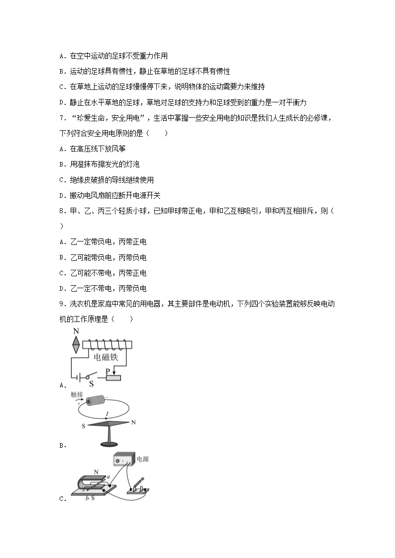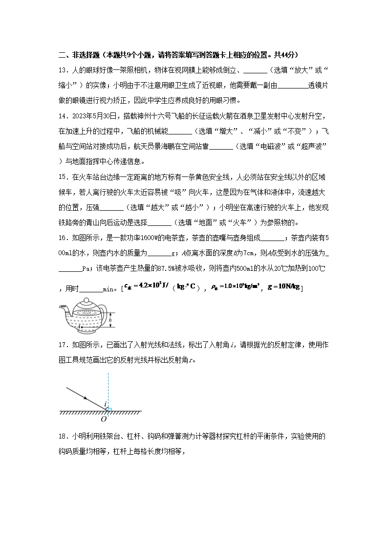 2023年湖南永州中考物理真题及答案(Word版)08-03