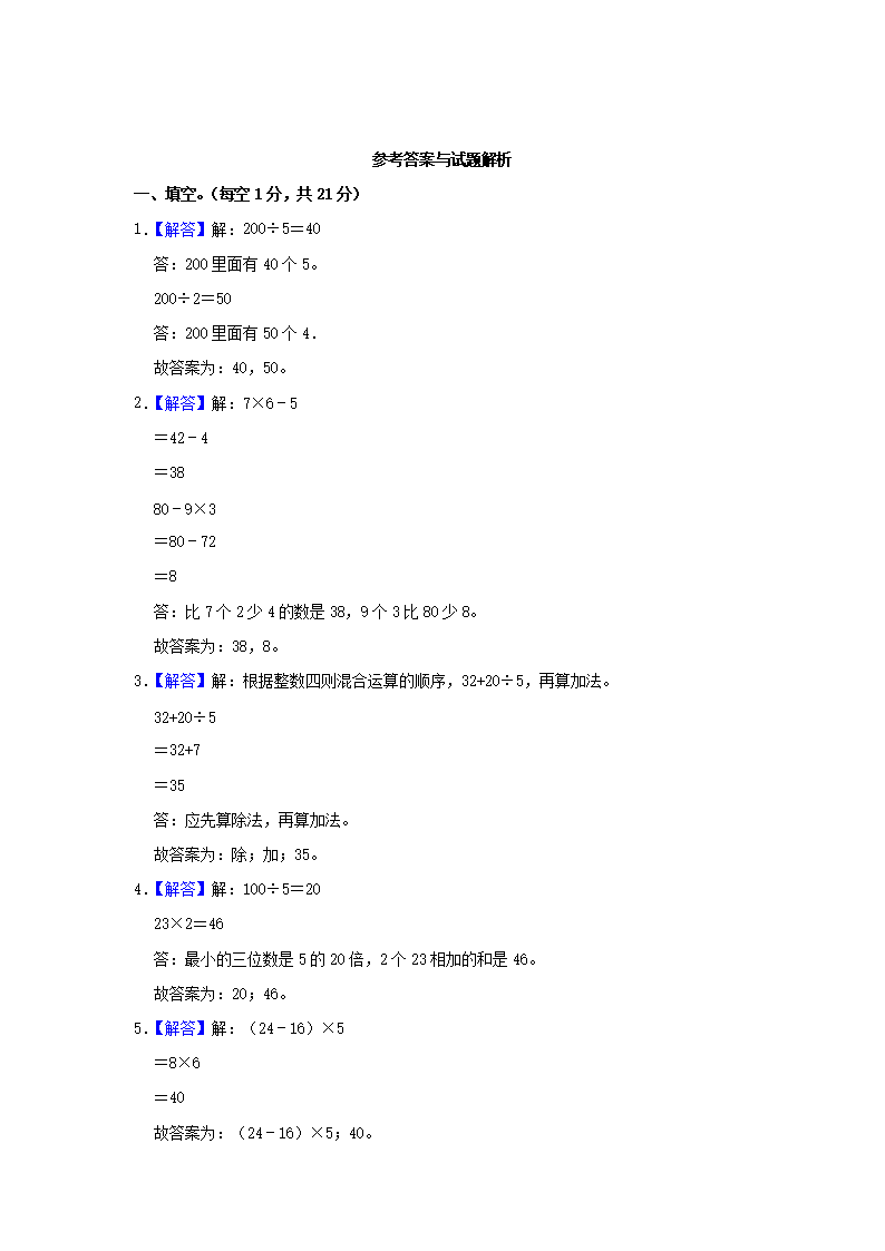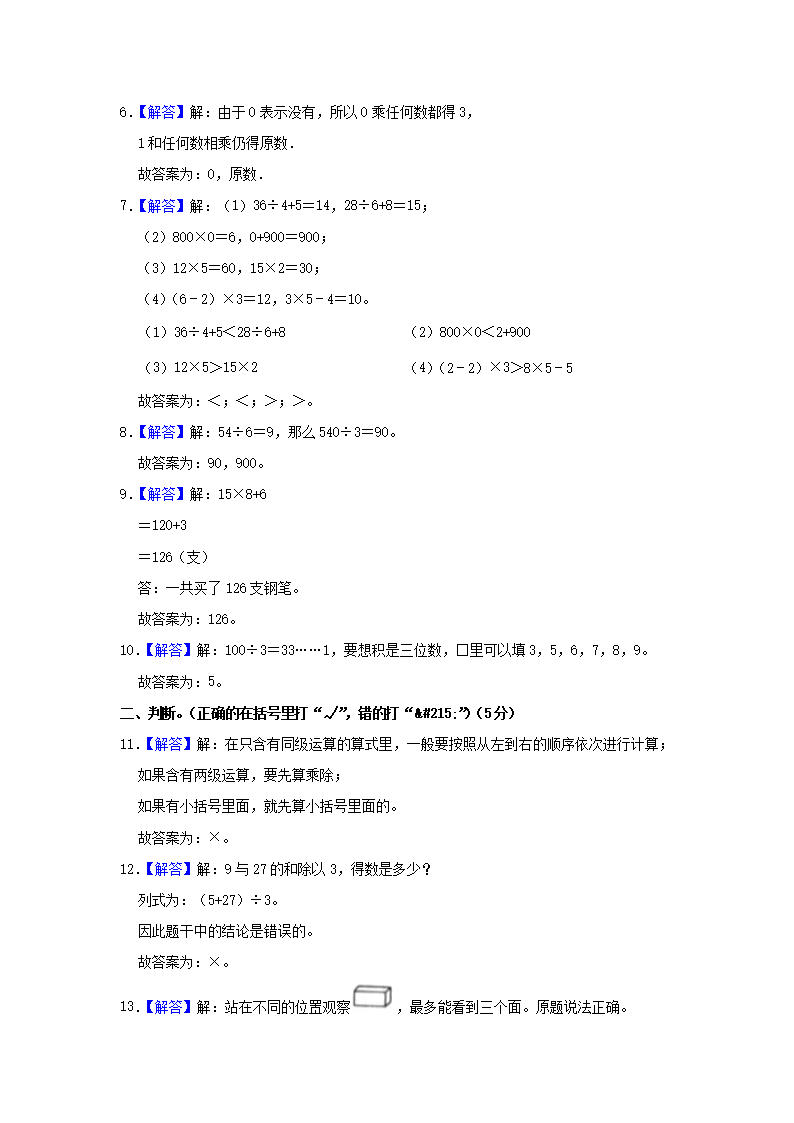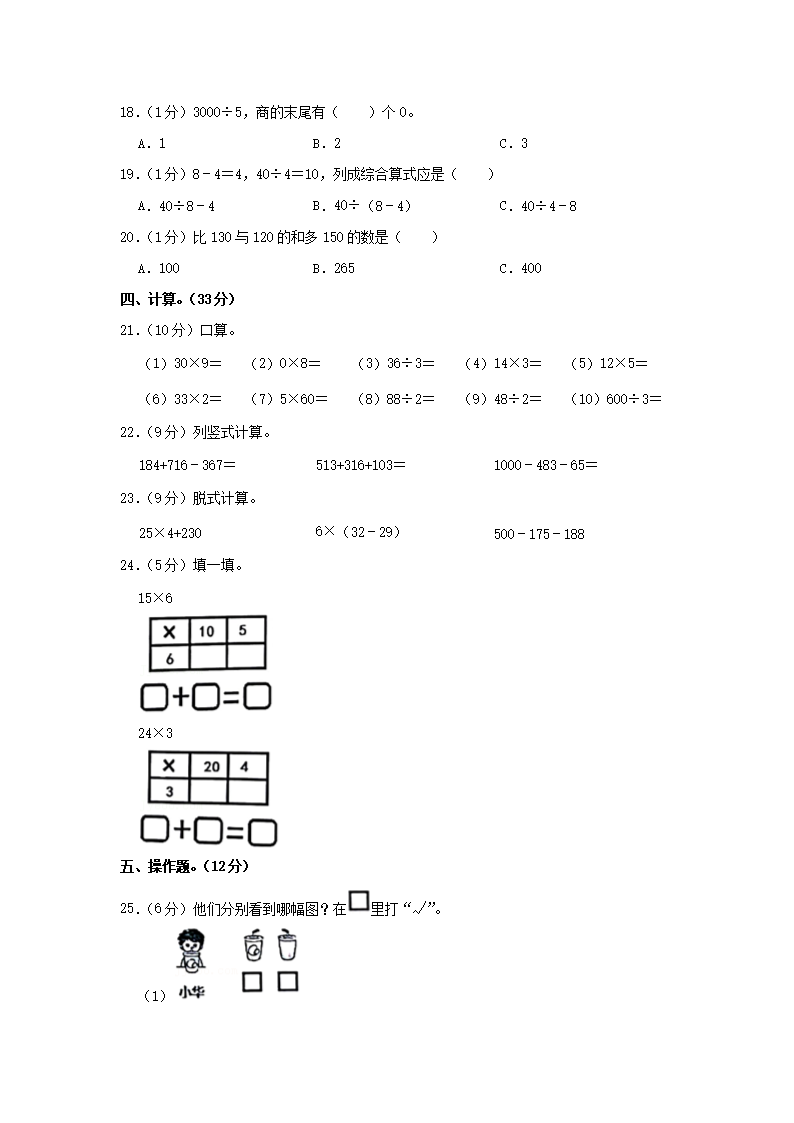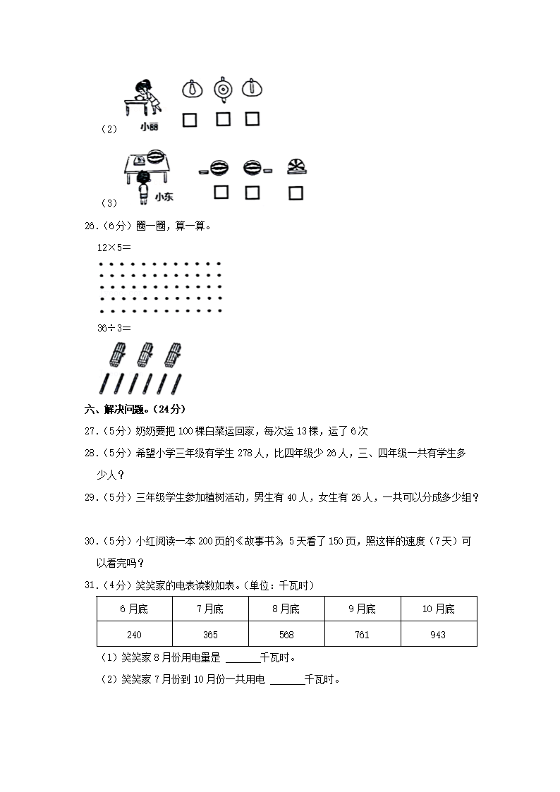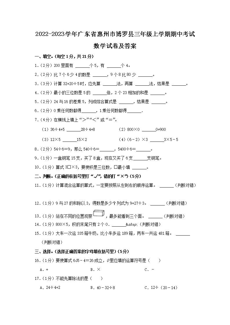 2022-2023学年广东省惠州市博罗县三年级上学期期中考试数学试卷及答案(Word版)08-09