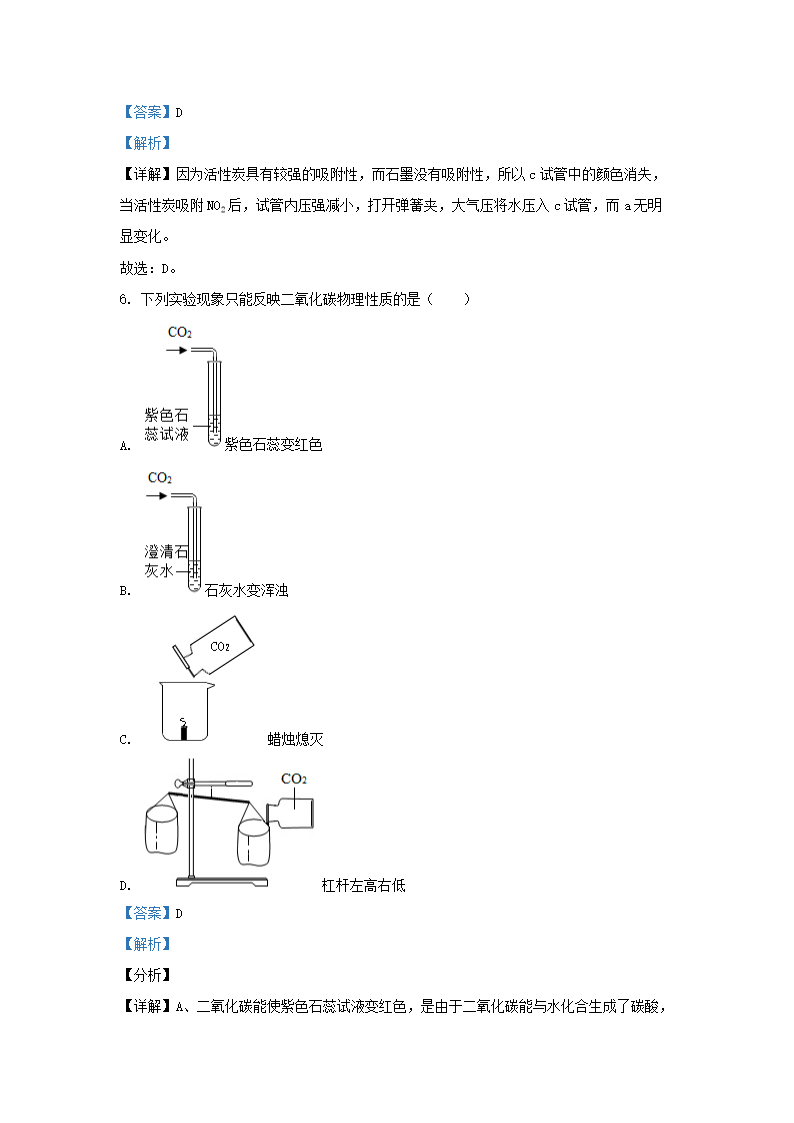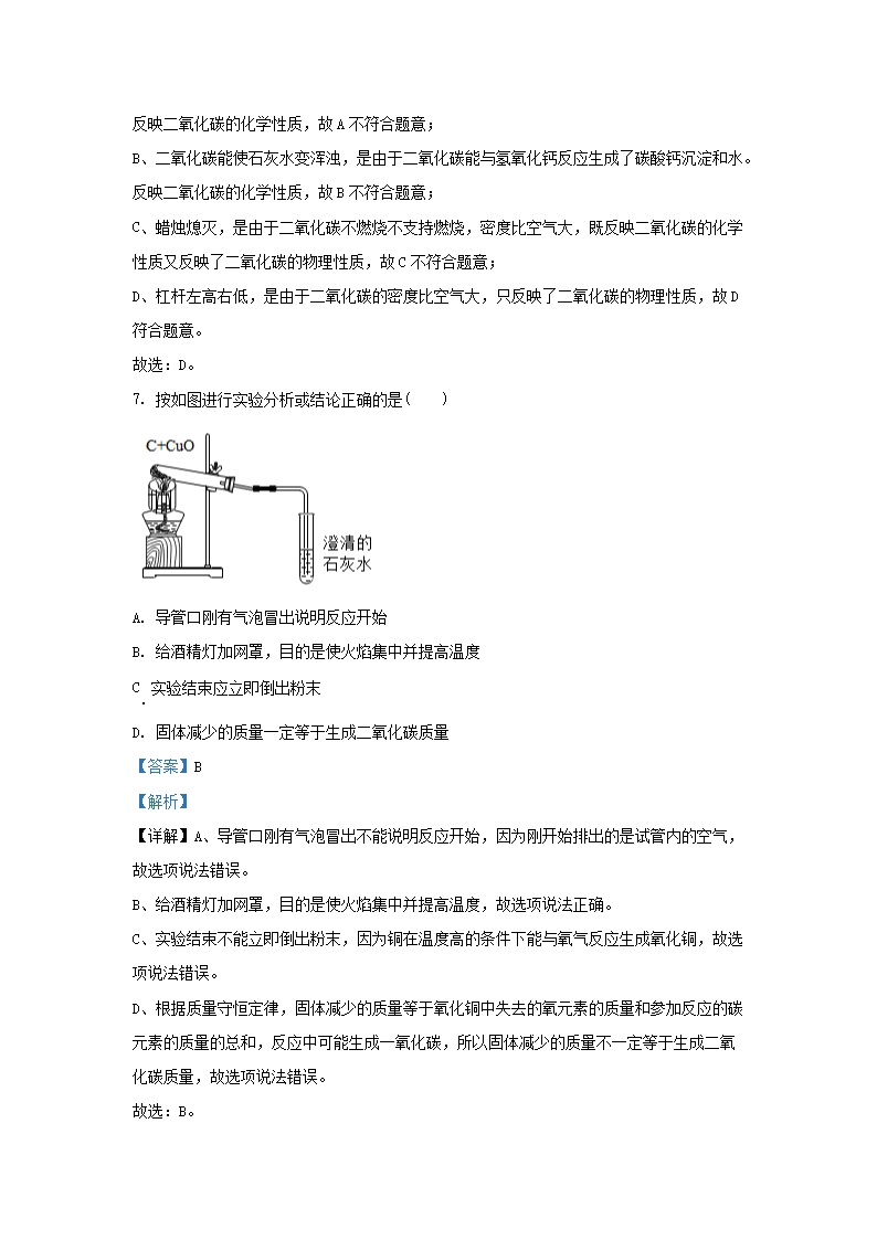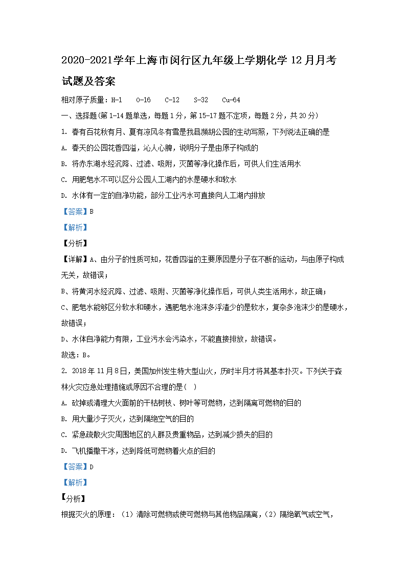 2020-2021学年上海市闵行区九年级上学期化学12月月考试题及答案(Word版)10-20