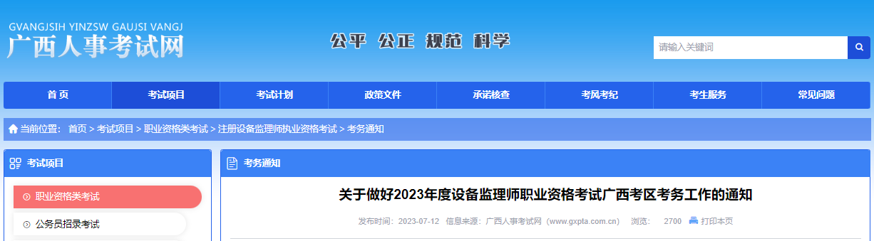 2023年广西设备监理师考试时间定于9月23日-24日举行!