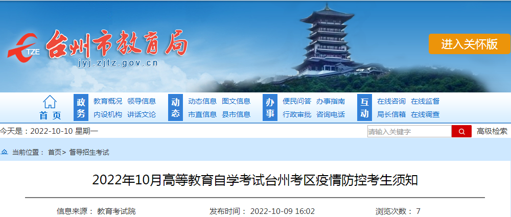 原文标题:2022年10月高等教育自学考试台州考区疫情防控考生须知