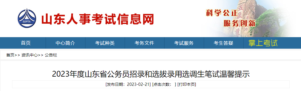 2023年山东公务员招录笔试温馨提示(2月25日举行)02-22