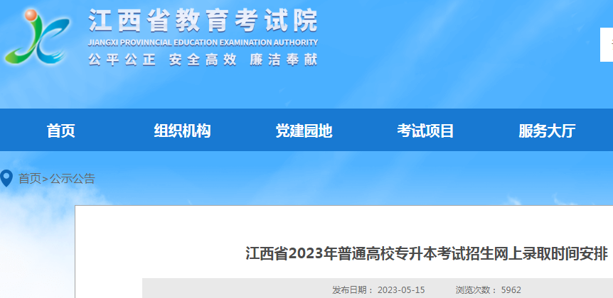 江西省2023年普通高校专升本考试招生网上录取时间安排05-16