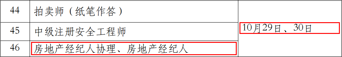 2022下半年房地产经纪人考试时间将于10月29日、30日举行。