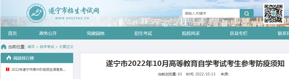 原文标题:遂宁市2022年10月高等教育自学考试考生参考防疫须知