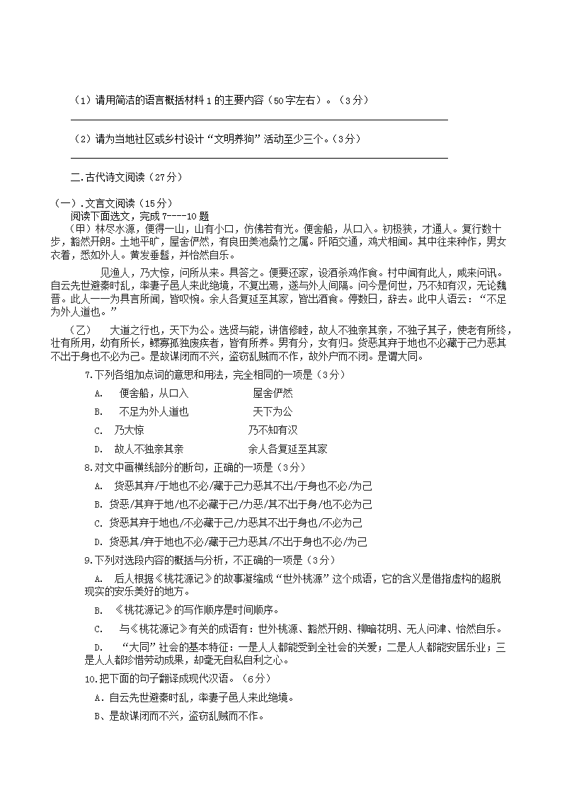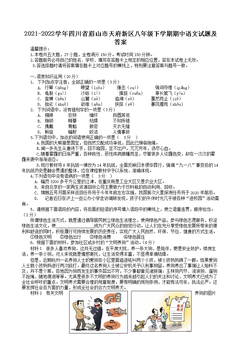 2021-2022学年四川省眉山市天府新区八年级下学期期中语文试题及答案(Word版)10-21