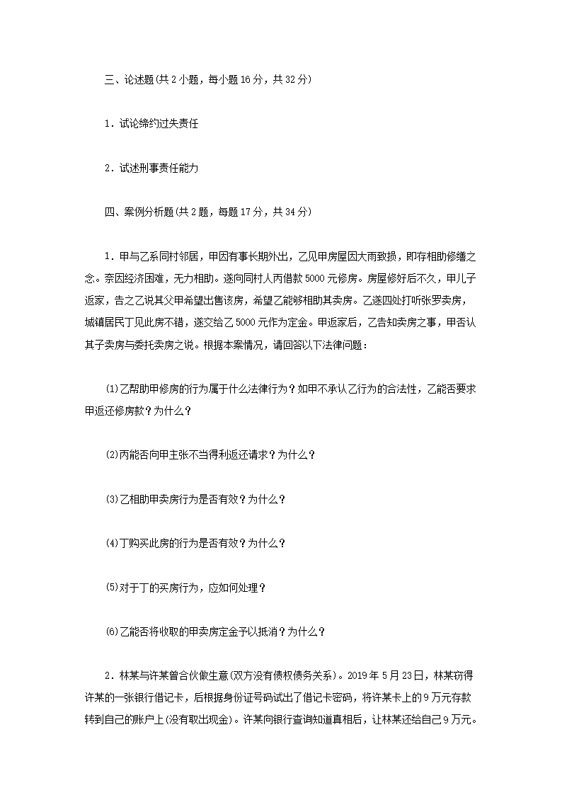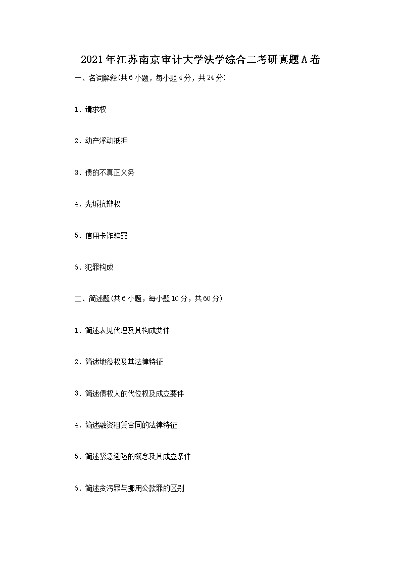 2021年江苏南京审计大学法学综合二考研真题A卷(Word版)05-26