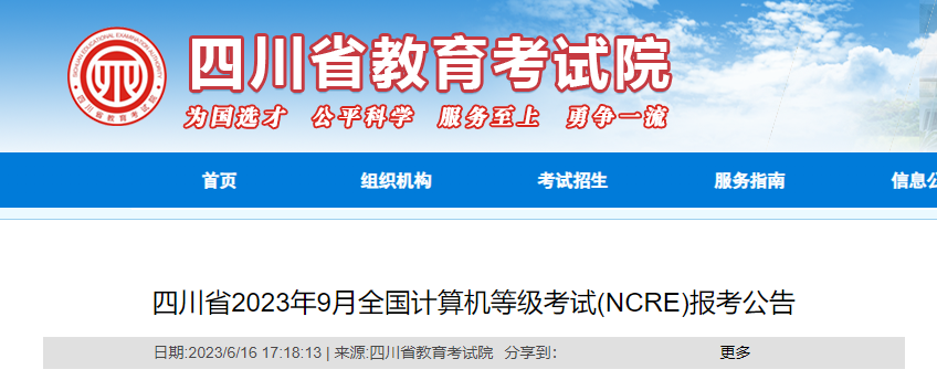 2023年9月四川计算机等级考试时间:9月23日-25日06-20