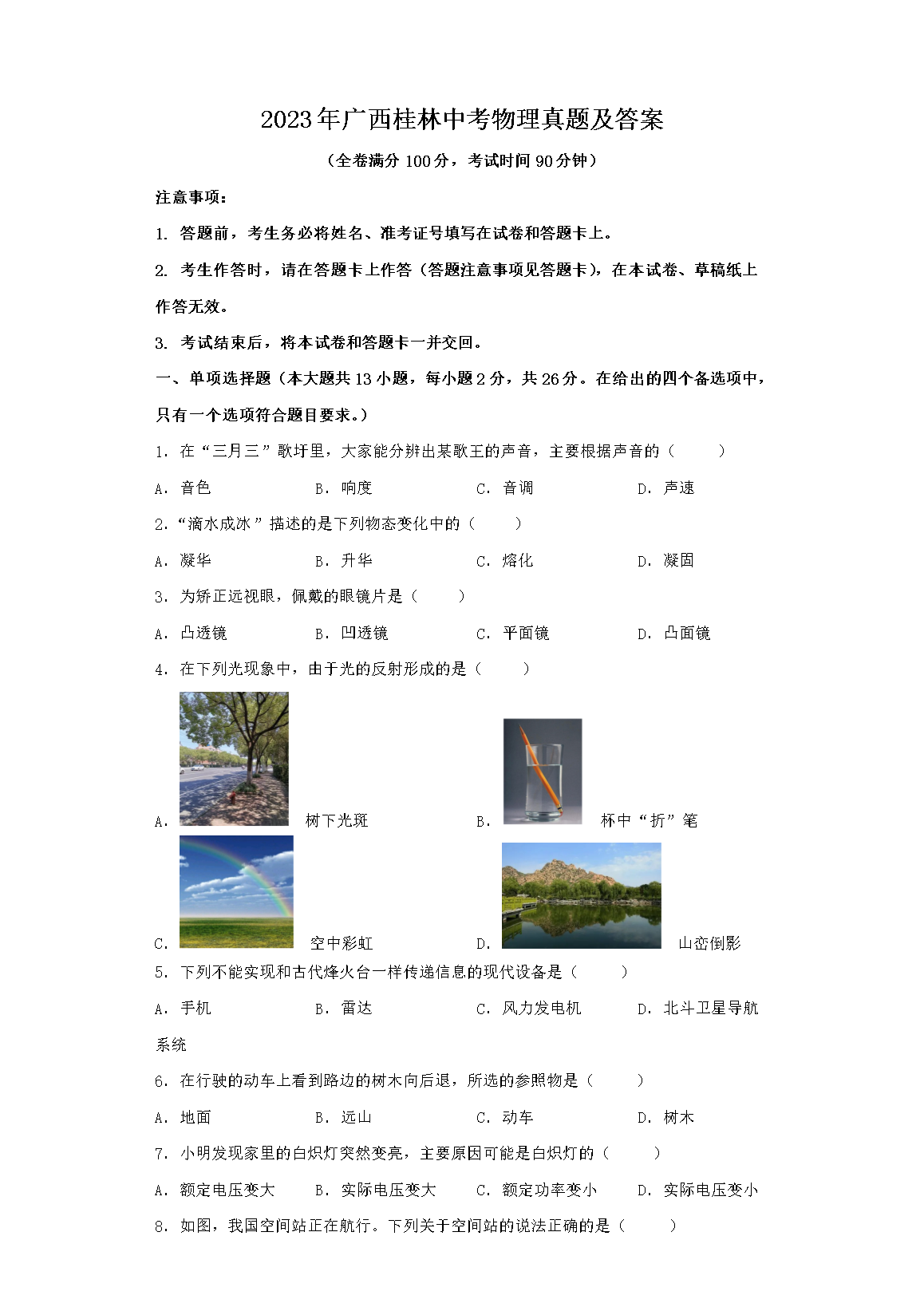 【文档预览】 文档大全网整理发布2023年广西桂林中考物理真题及答案(Word版),前五页预览如下: