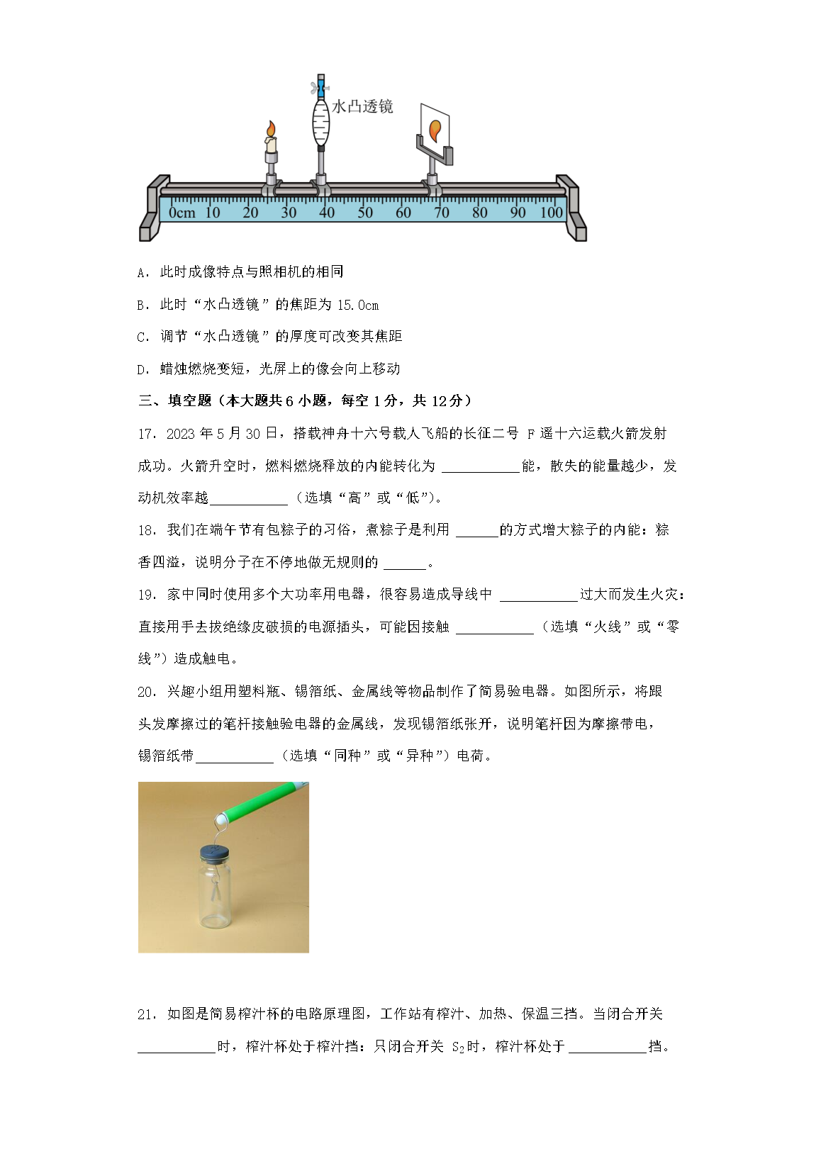 2023年广西桂林中考物理真题及答案(Word版)06-30