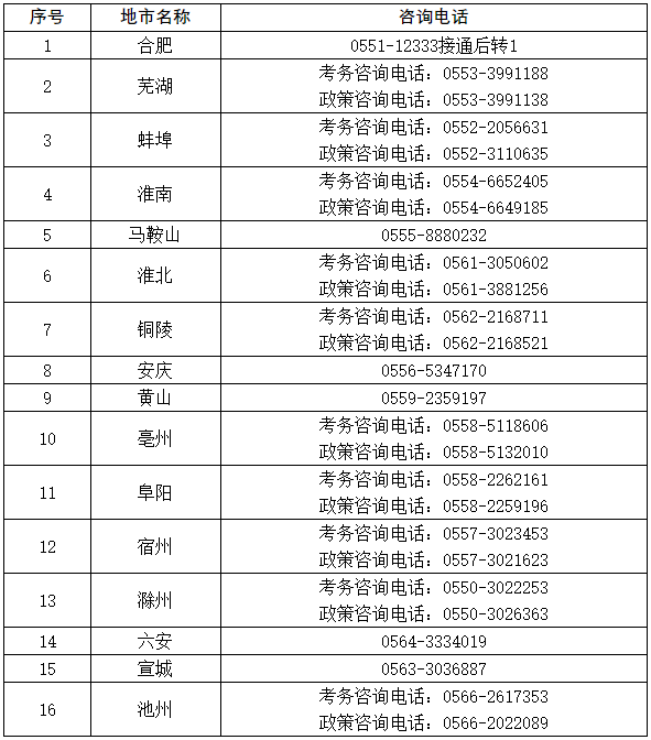 各市咨询电话: