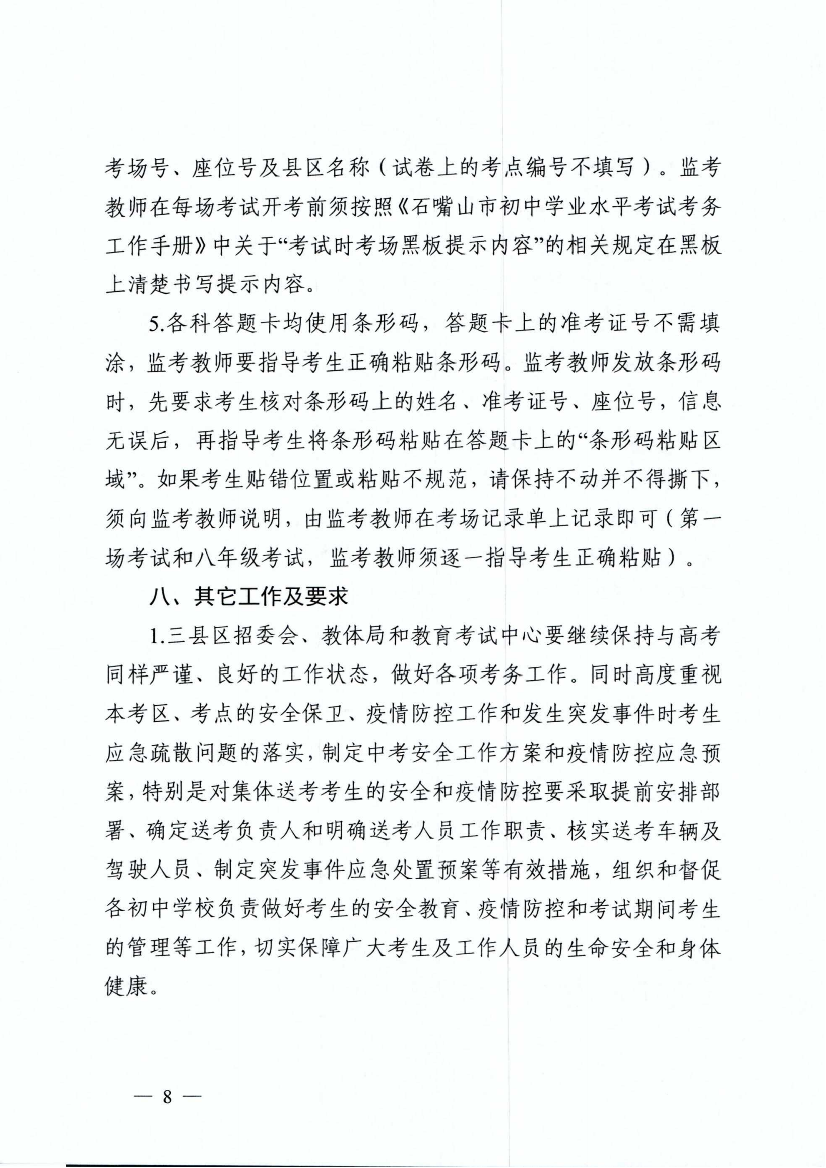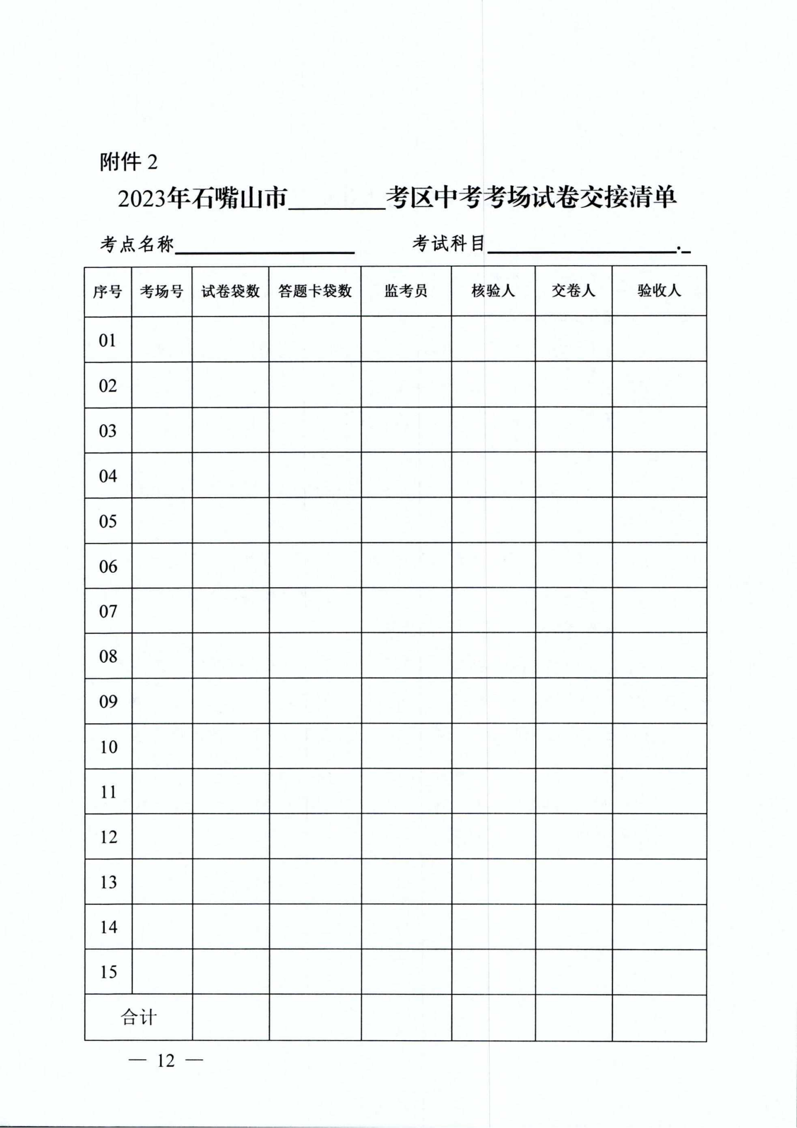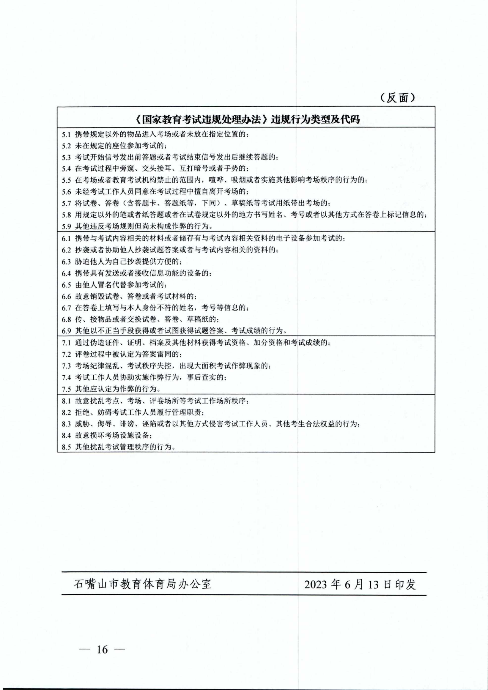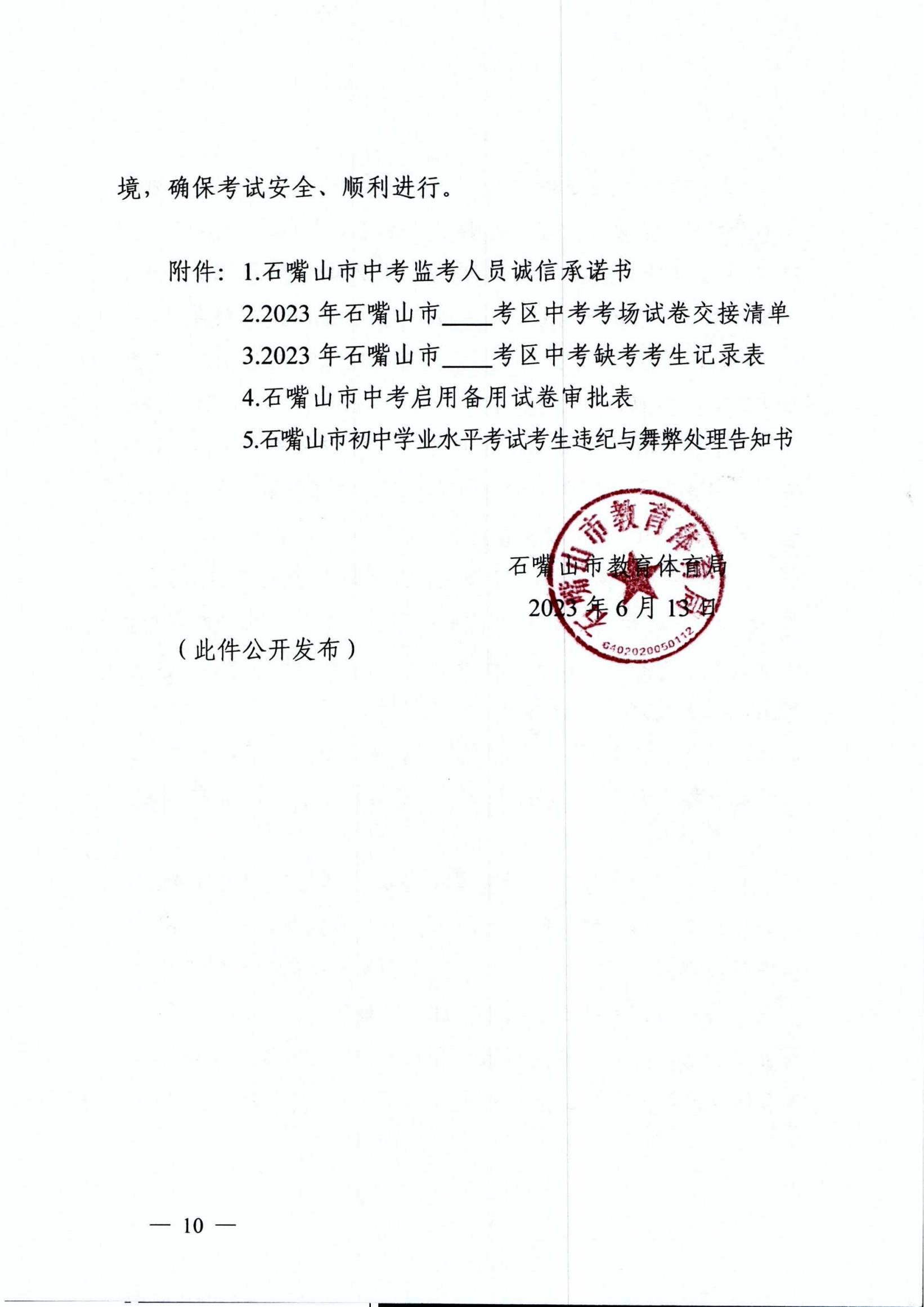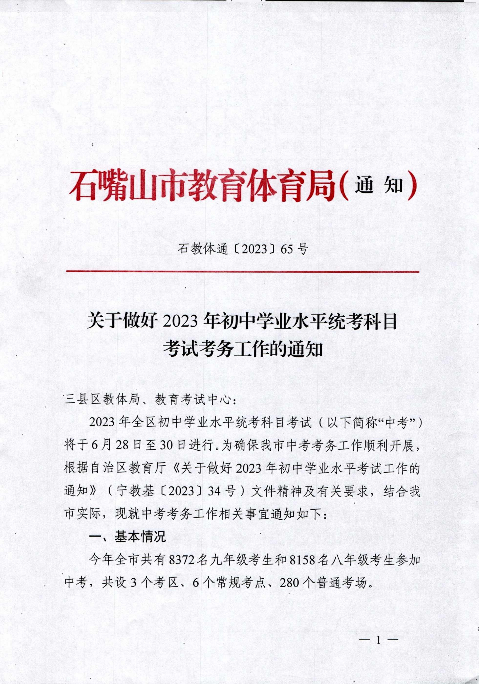 宁夏石嘴山2023年初中学业水平统考科目考试考务工作的通知06-15