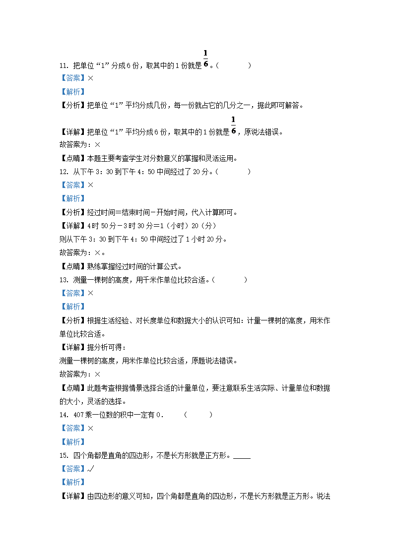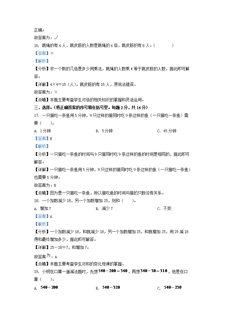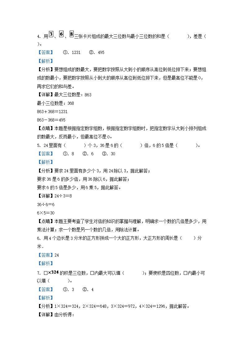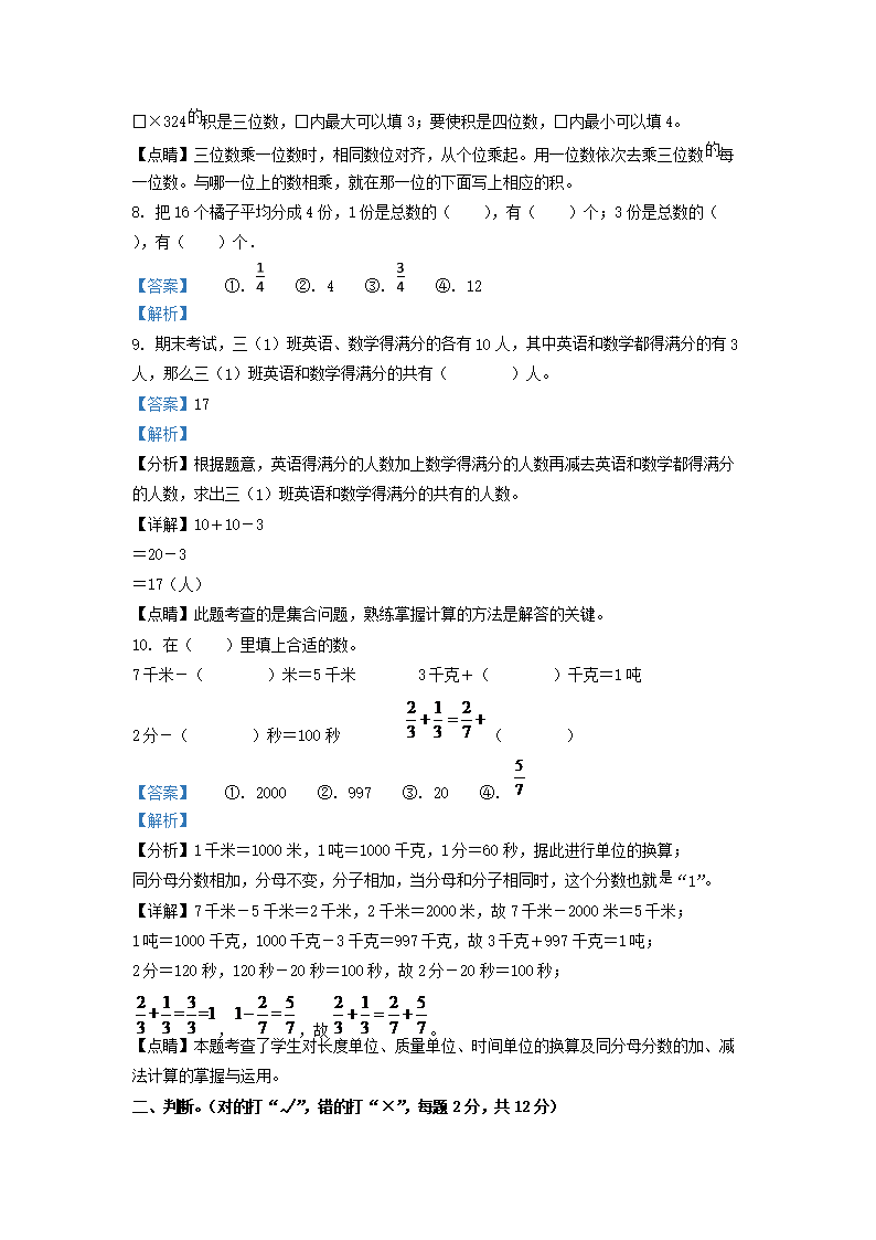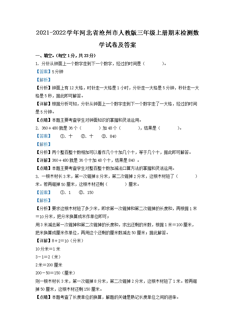 2021-2022学年河北省沧州市人教版三年级上册期末检测数学试卷及答案(Word版)09-28