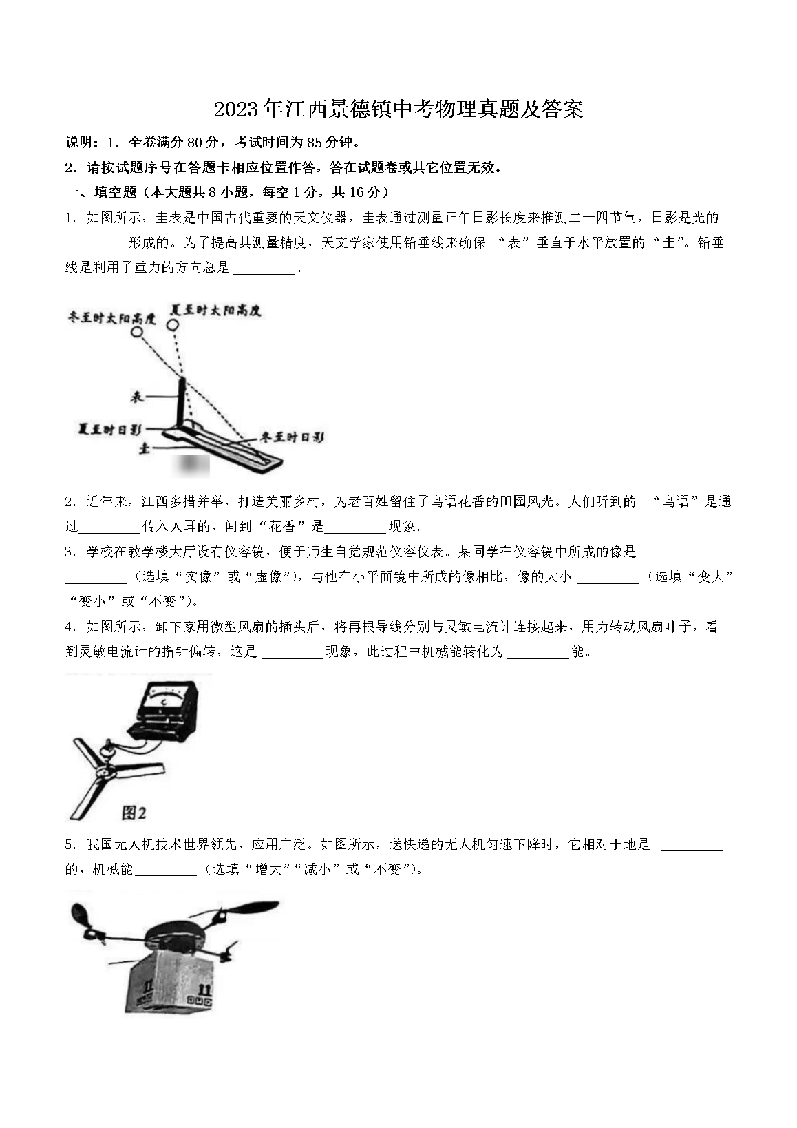 2023年江西景德镇中考物理真题及答案(Word版)06-21