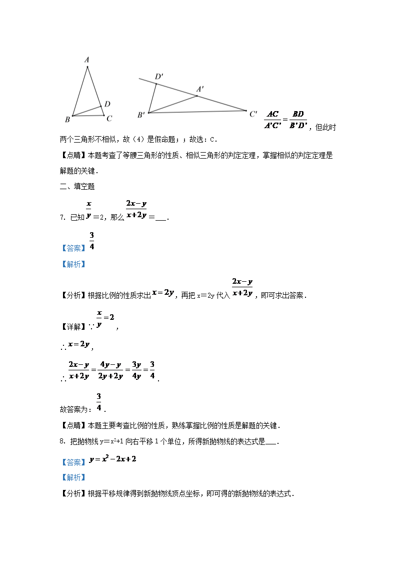 2021-2022学年上海市松江区九年级上学期数学期末试题及答案(Word版)09-06