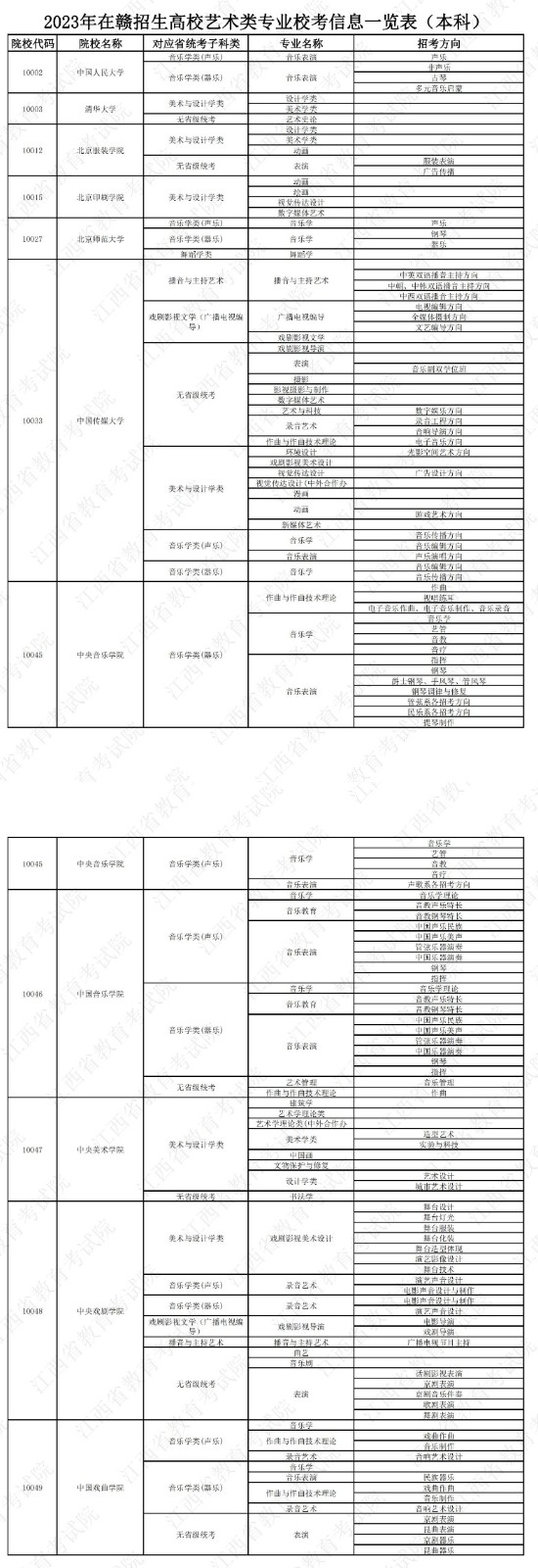 【#艺术高考# 导语】®文档大全网高考频道从江西省教育考试院了解到,2023年在江西招生高校艺术类专业校考信息一览表已公布。具体如下: