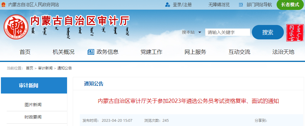 原文标题:内蒙古自治区审计厅关于参加2023年遴选公务员考试资格复审、面试的通知