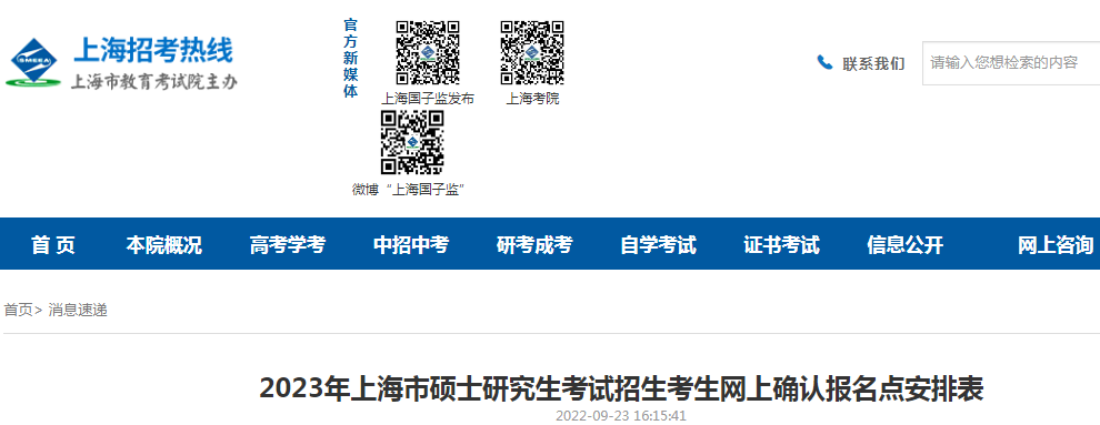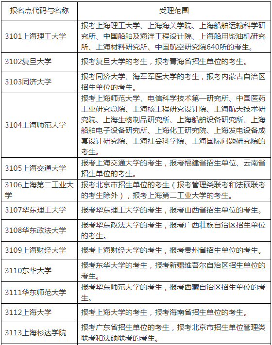 2023年上海市硕士研究生考试招生考生网上确认报名点安排表09-26
