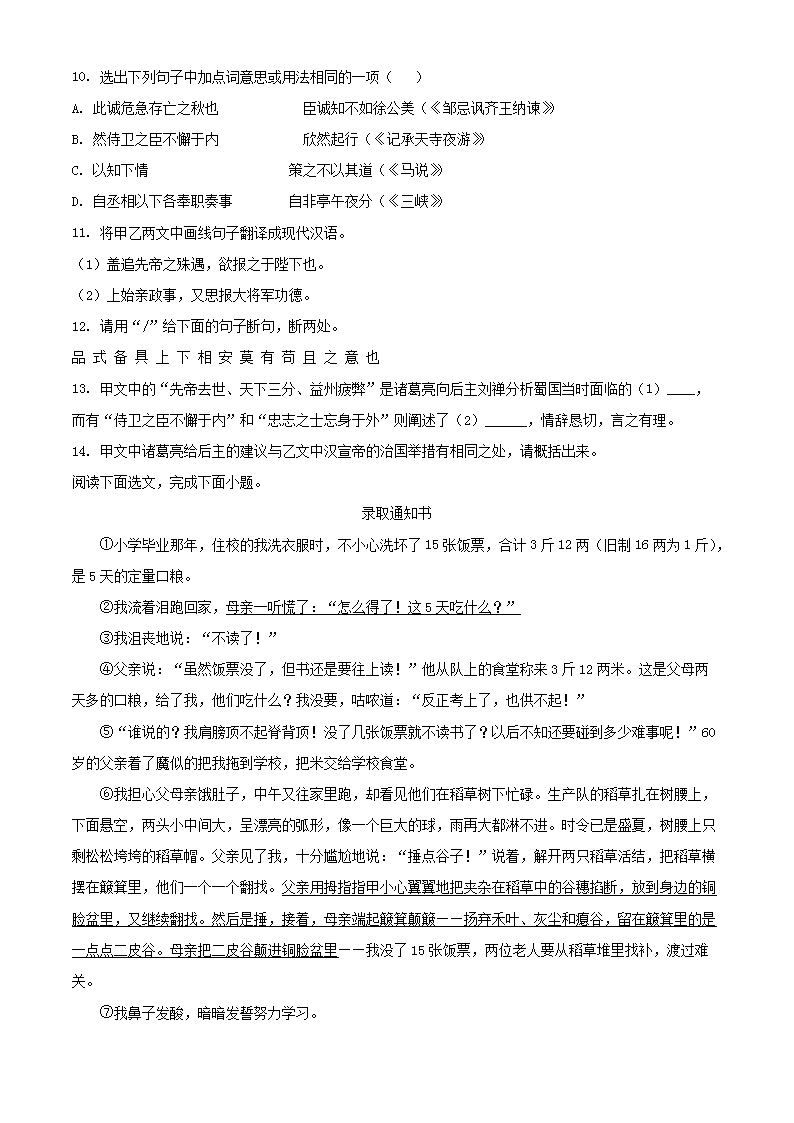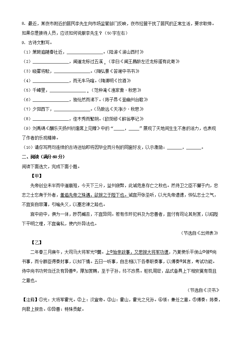 2023年辽宁本溪中考语文真题及答案(Word版)08-09