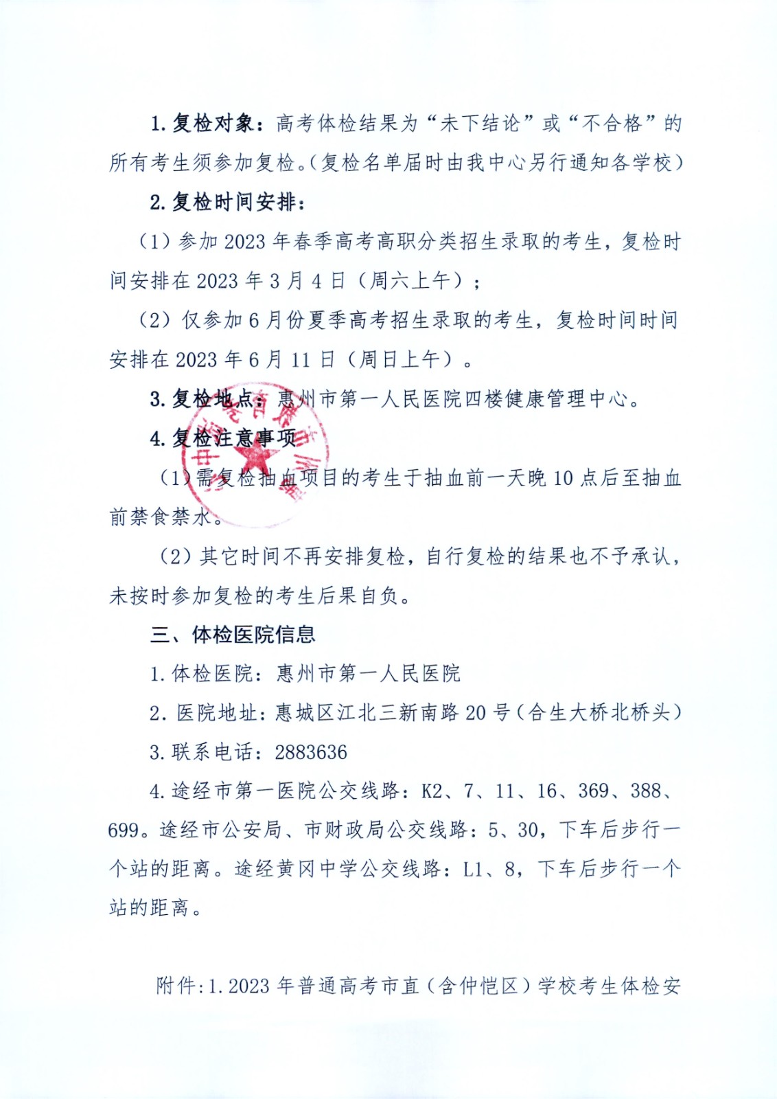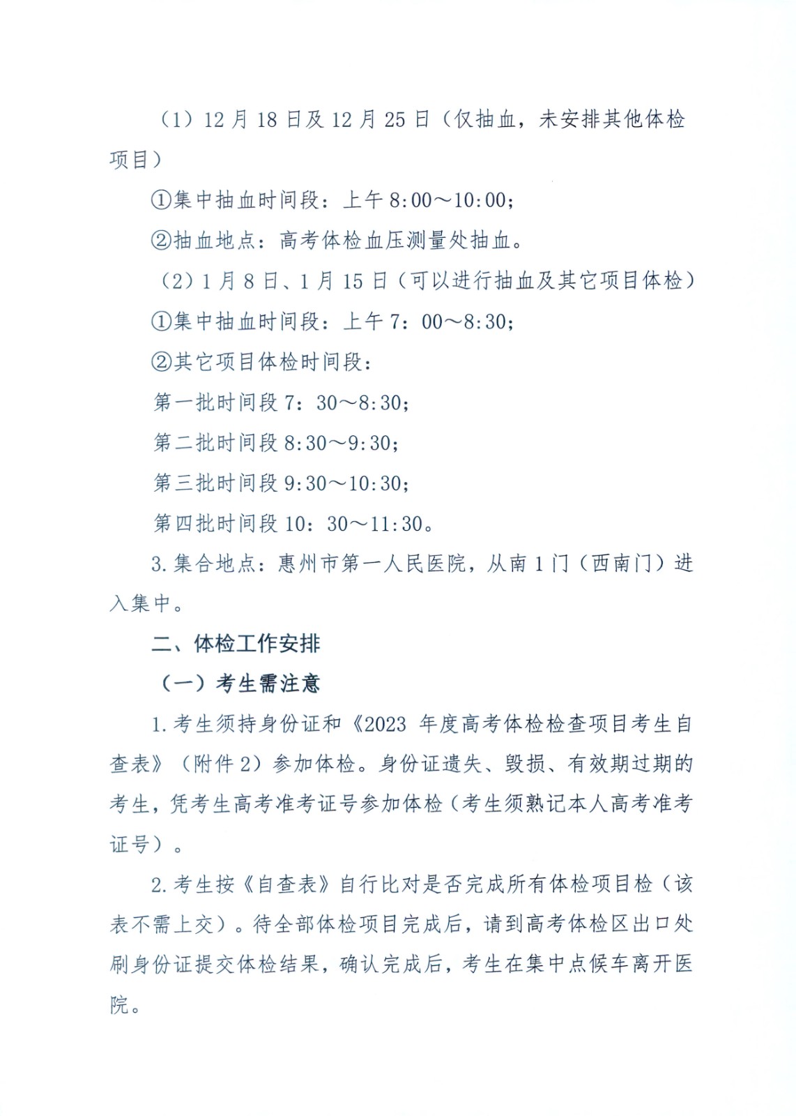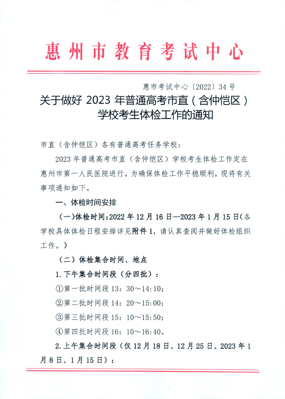 广东惠州2023年高考市直(含仲恺区)学校考生体检工作的通知12-13