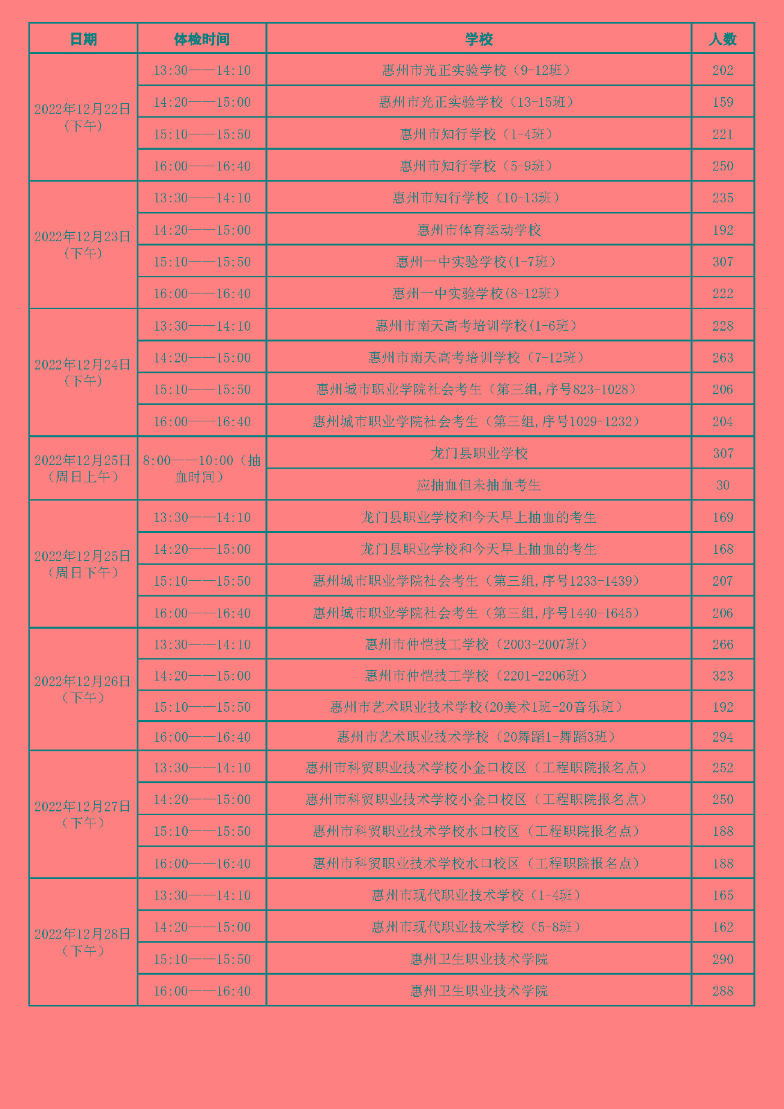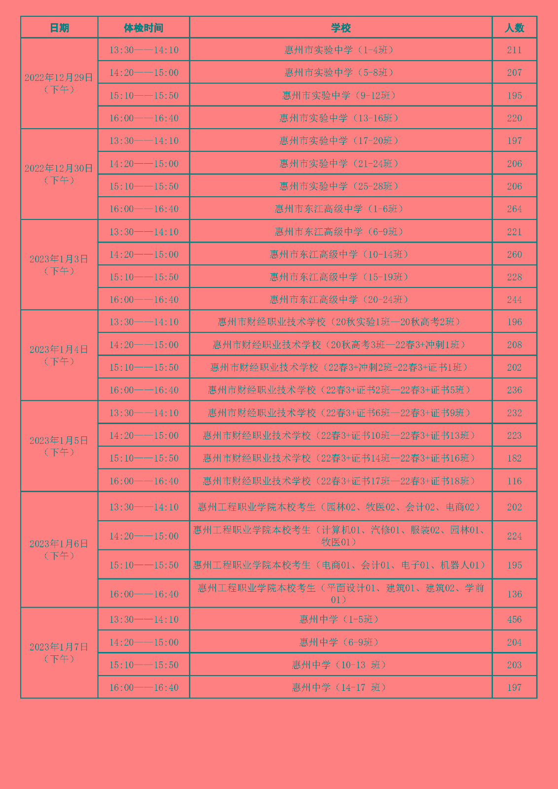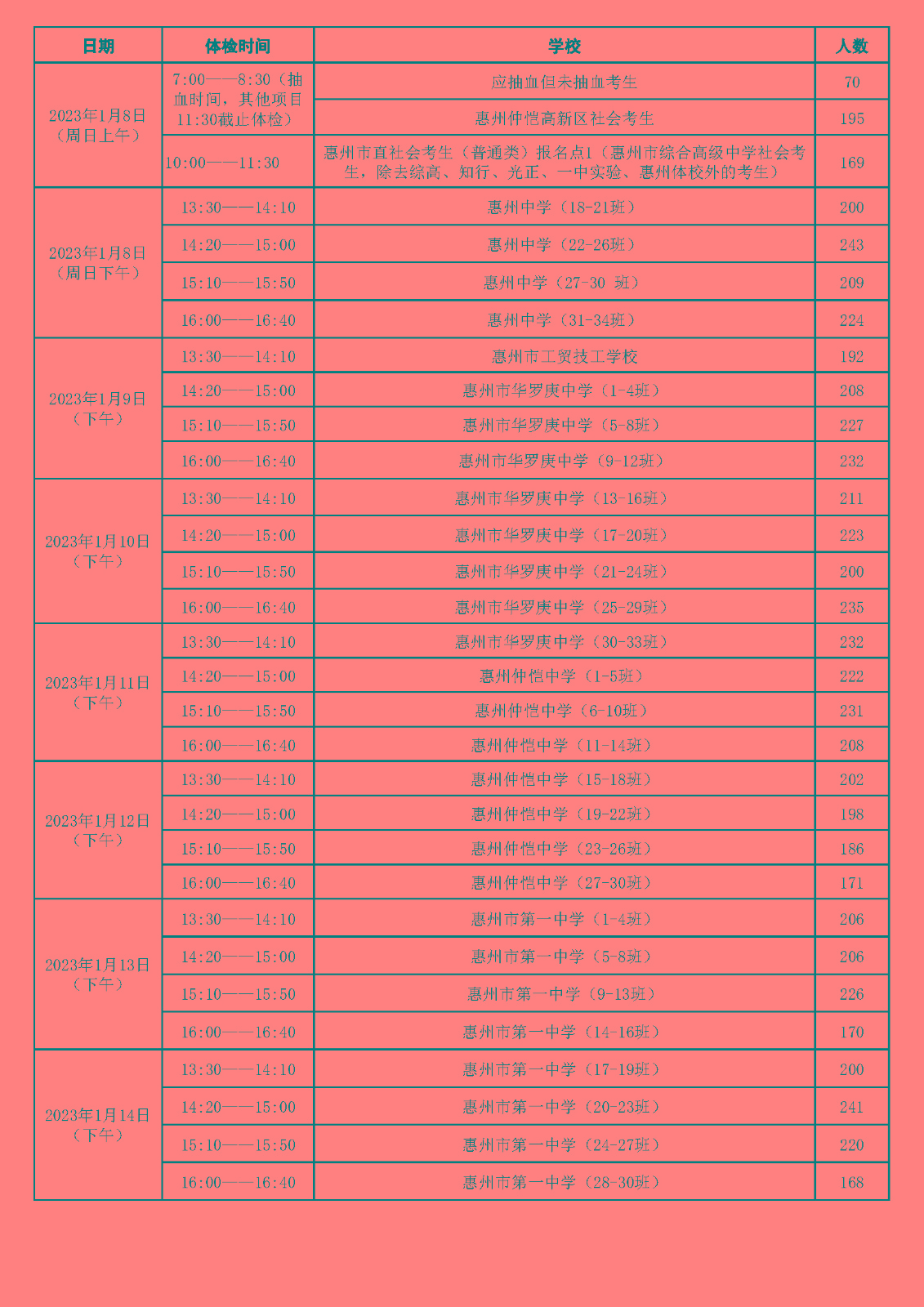 广东惠州2023年高考市直(含仲恺区)学校考生体检工作的通知12-13