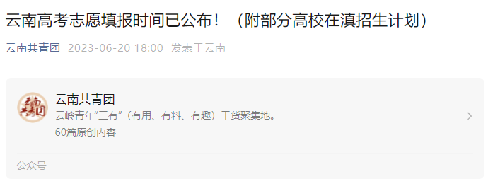 【#高考# 导语】©文档大全网从云南共青团了解到,2023年云南高考志愿填报时间为6月27日至6月29日,相关事宜如下: