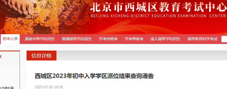 北京西城区2023年初中入学学位派位结果查询入口(已开通)07-08