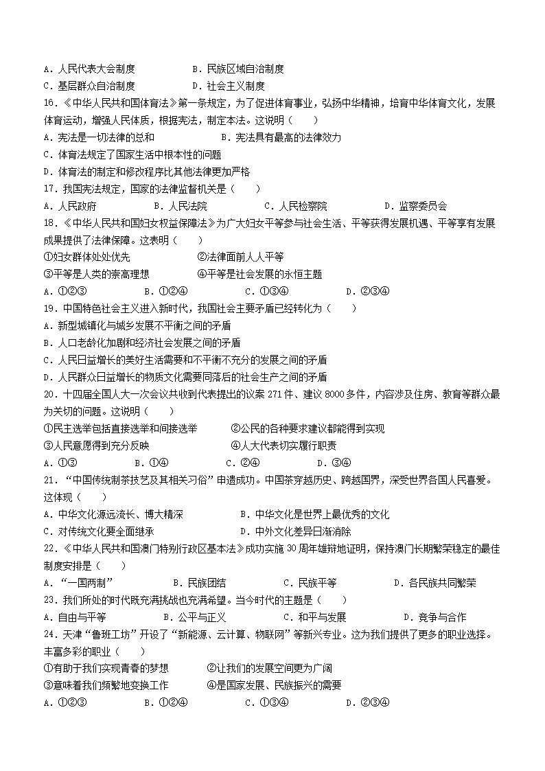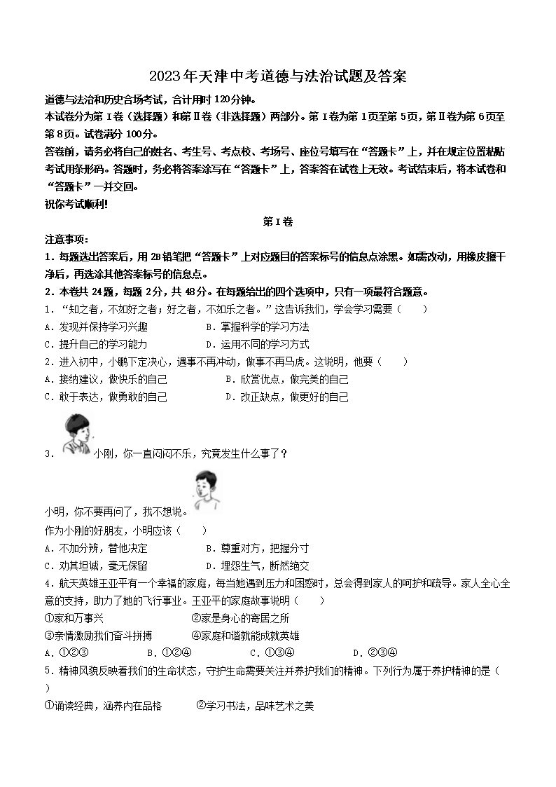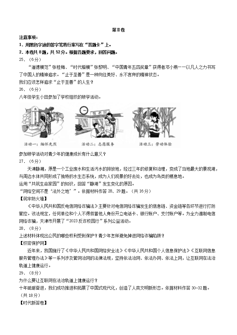 2023年天津中考道德与法治试题及答案(Word版)06-22