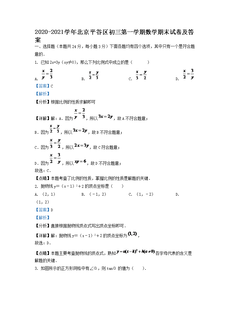 2020-2021学年北京平谷区初三第一学期数学期末试卷及答案(Word版)07-26